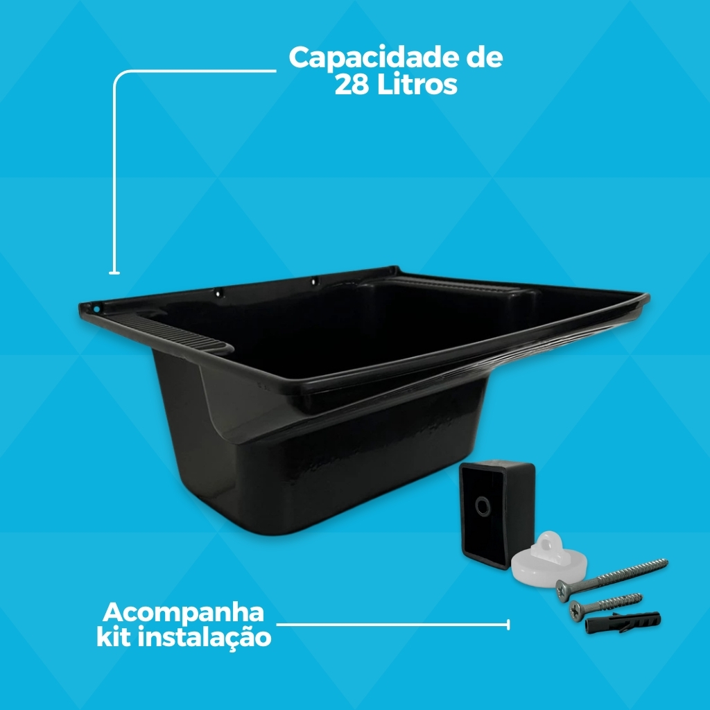 Tanque Plástico Preto 28 Litros Lavar Roupa + Sifão