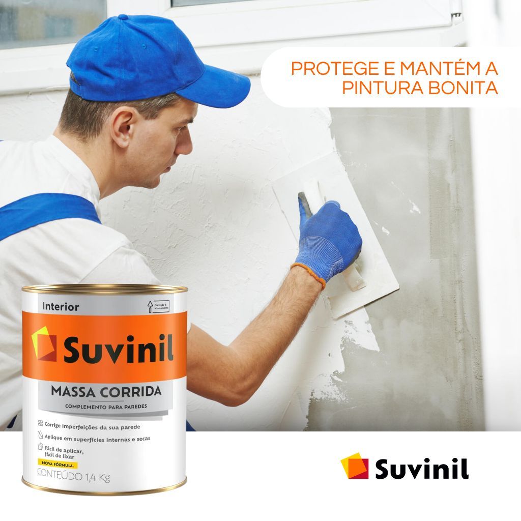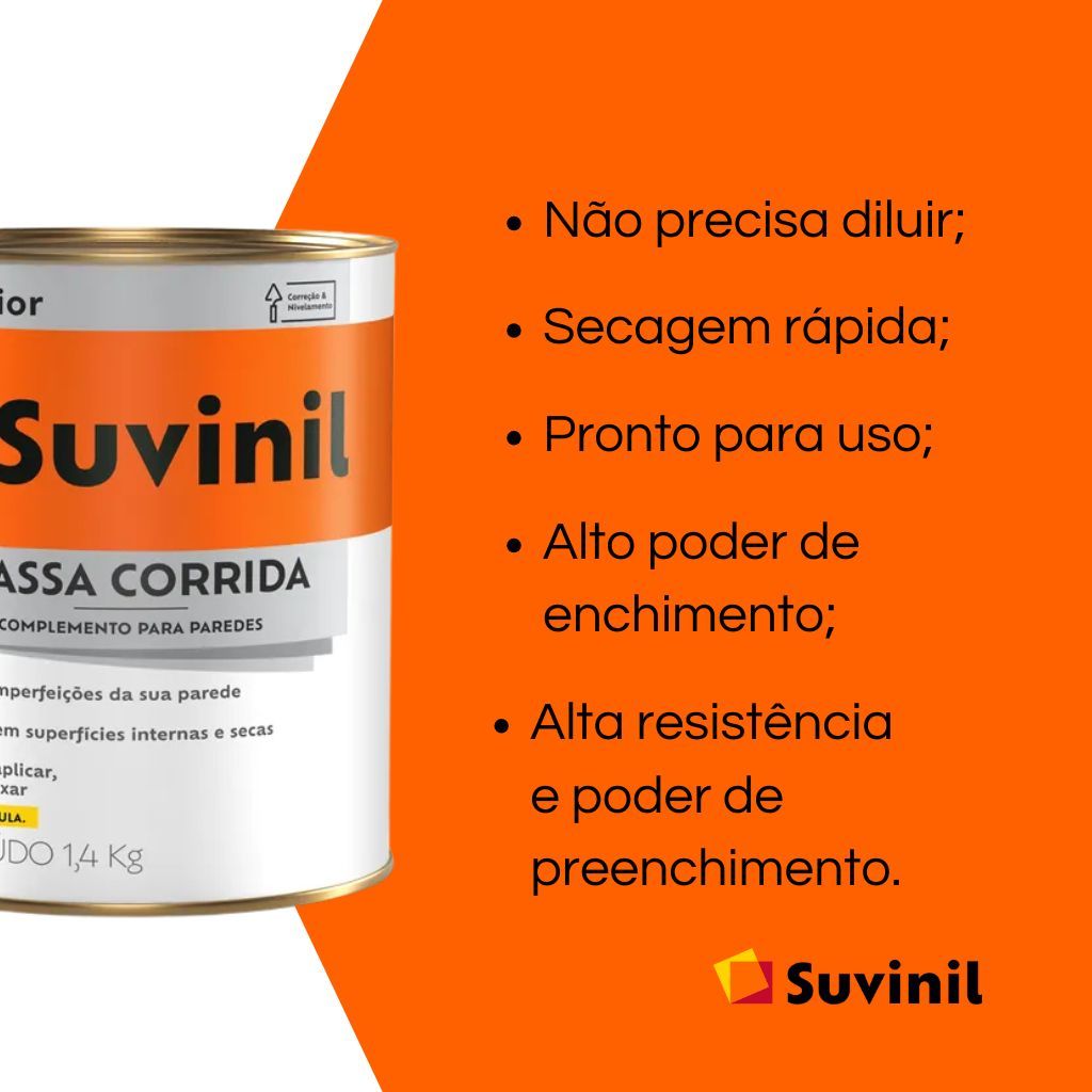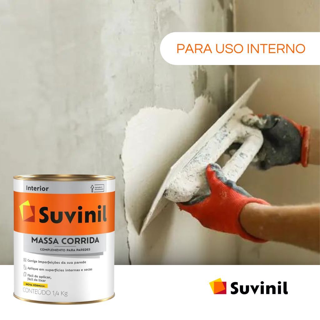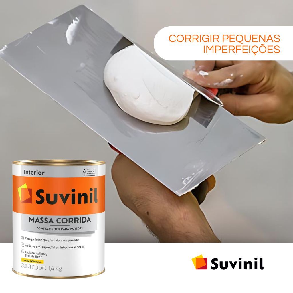 Kit reparo Massa corrida PVA Suvinil 1,5kg + espatula 13 cm + 2 lixas de parede