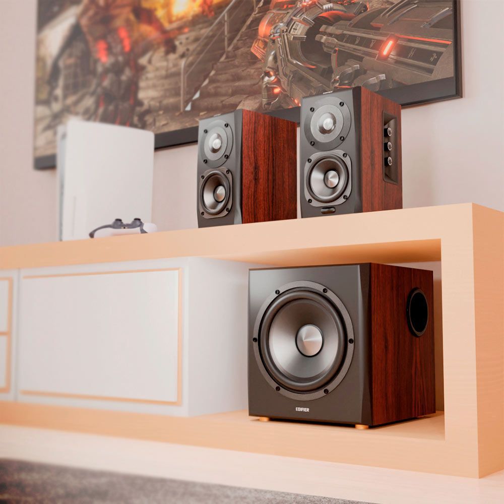 Caixa de Som com Subwoofer Bluetooth 150W RMS EDIFIER S350DB - Madeira