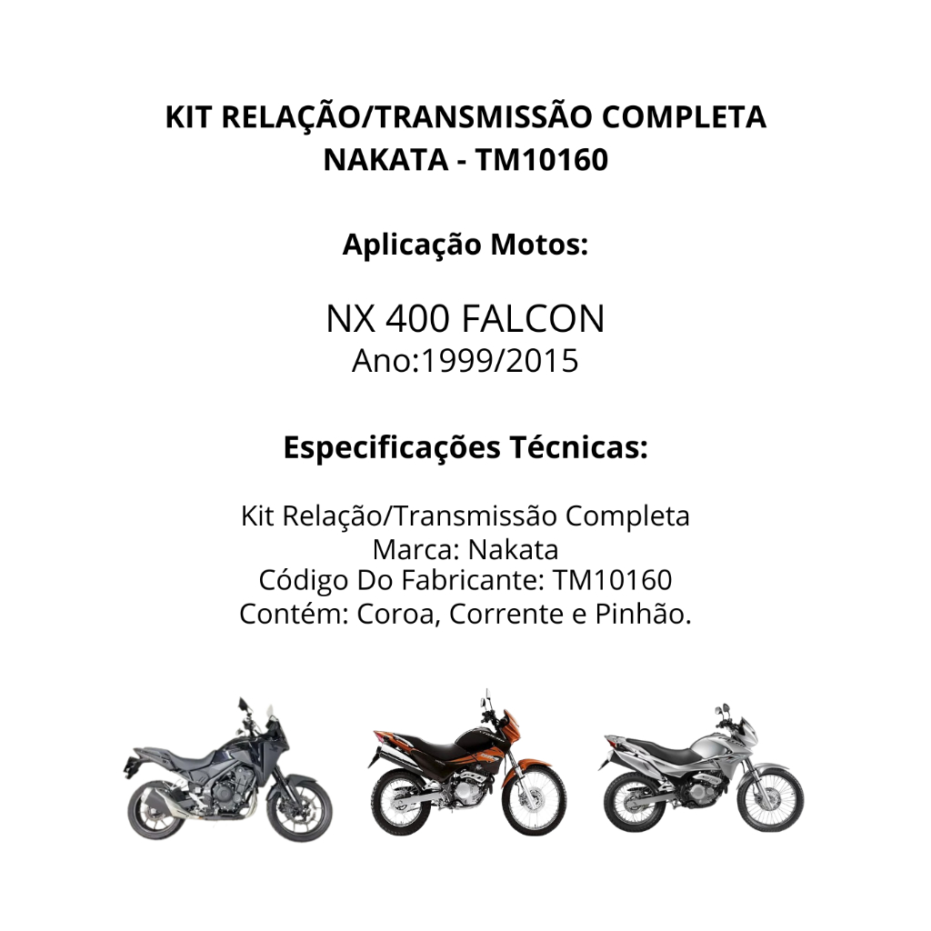 Kit Relação Transmissão Honda Nx 400 Falcon 1999 até 2015 Original Nakata