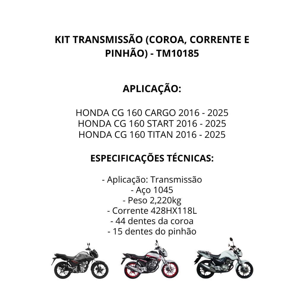 Kit Relação Transmissão Titan Fan Start Cargo 160 2015 até 2025 Original Nakata