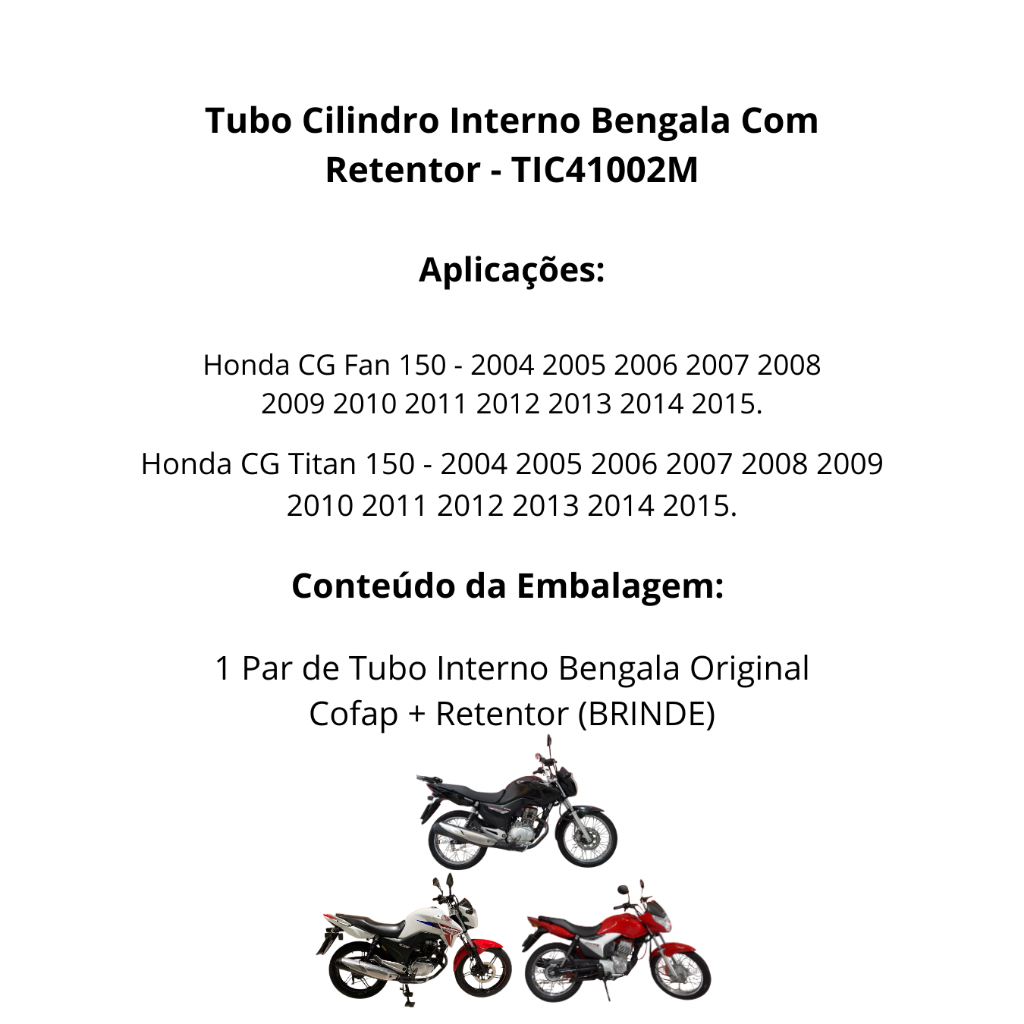Par Tubo Interno Bengala Cilindro C/Retentor Fan Titan 150 2004 até 2015 Original Cofap