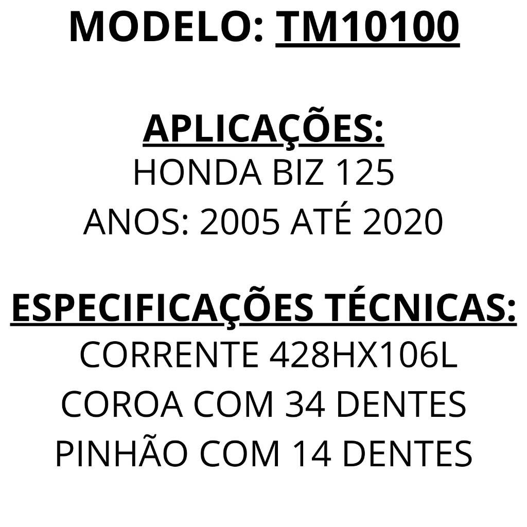 Kit Transmissão Relação Coroa Corrente Pinhão Honda Biz 125 2005 até 2024 Original Nakata
