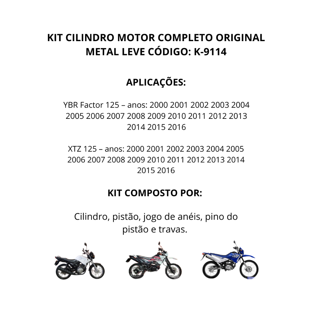 Kit Cilindro Motor Camisa Pistão e Anéis Yamaha YBR Factor XTZ 125 2000 até 2016 Original Metal Leve