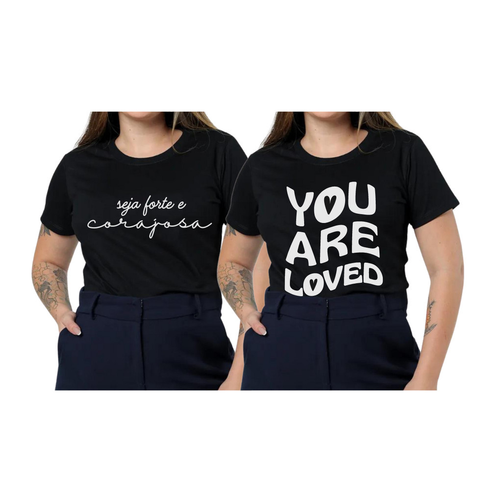 Kit 2 T Shirt Feminina Blusinha Básica Estampada Blusa Feminina Frases