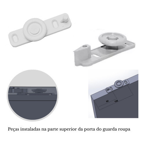 2 Kit Roldanas para Porta Correr Guarda Roupa Sistema 2 Portas 45kl