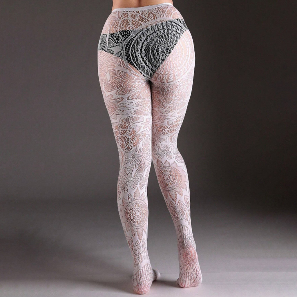 Meias Base Jacquard com Padrão Oco Preto Sexy Tatuagem Vintage Meias Calças Sem Pés para Mulheres Meia-calça Rede 2025 T