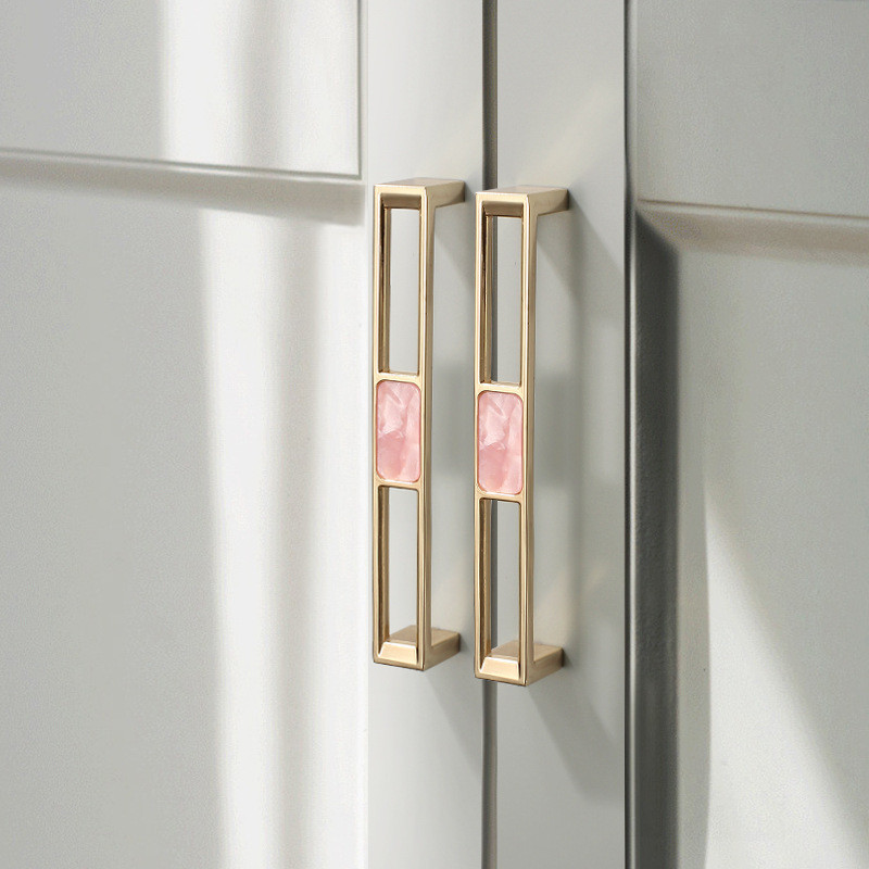 Puxador de Armário de Luxo Leve Dourado Rosa Puxador de Gaveta Moderno Simples Botões e Puxadores de Armário