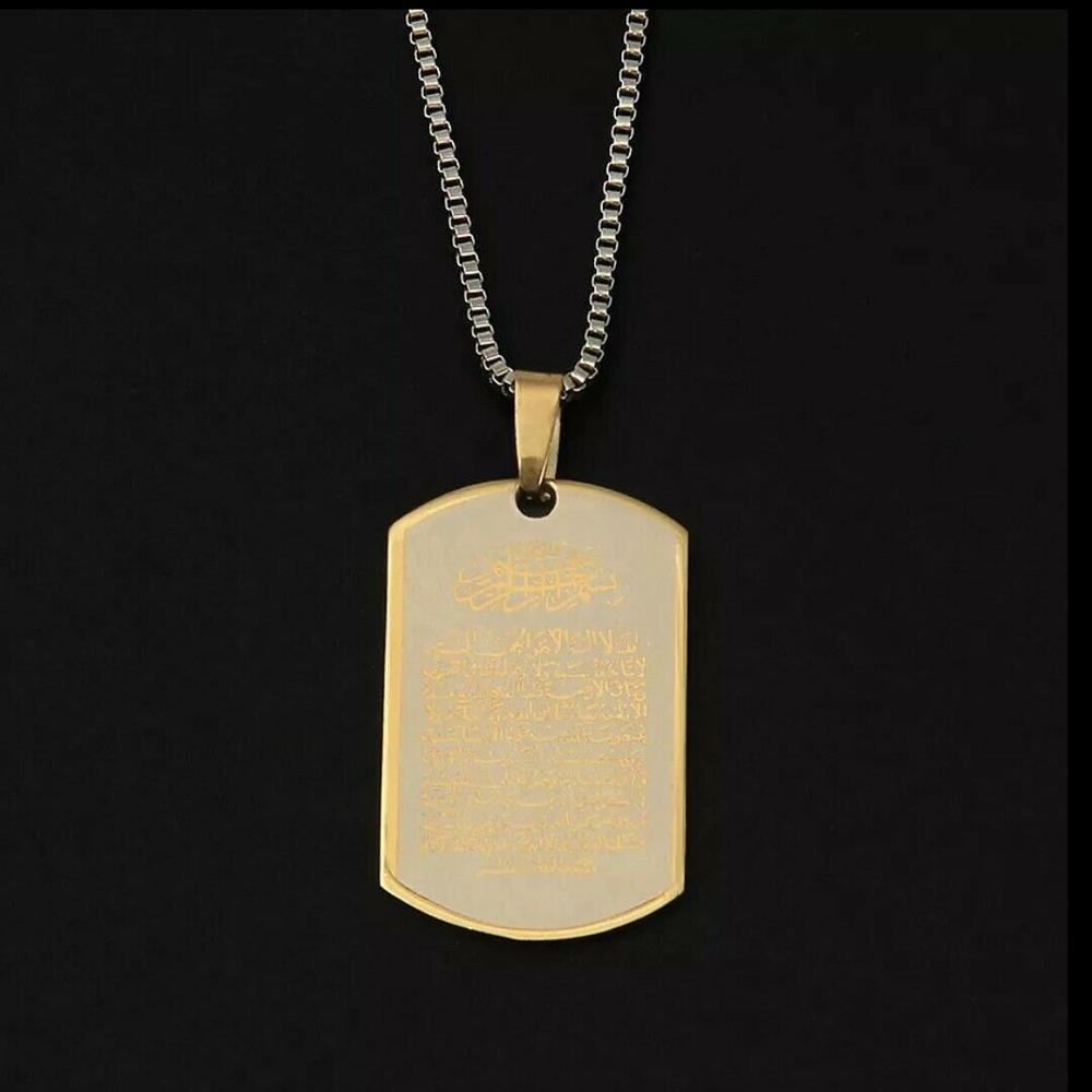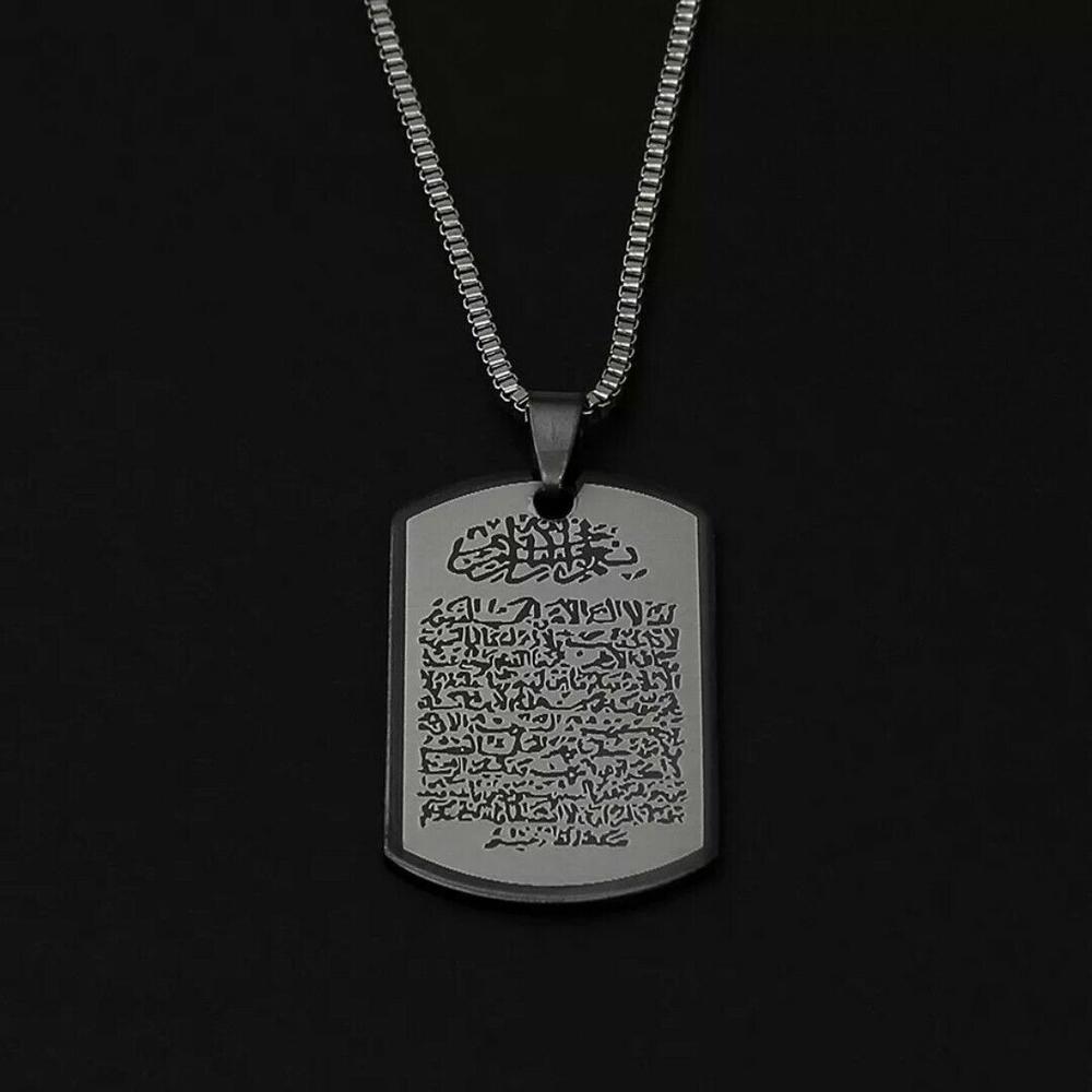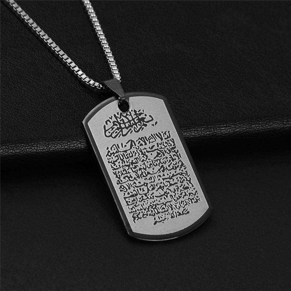 Colar De Aço Inoxidável Versículo Alcorão/Surah Ayatul Kursi Pingente Islâmico Com Corrente Longa