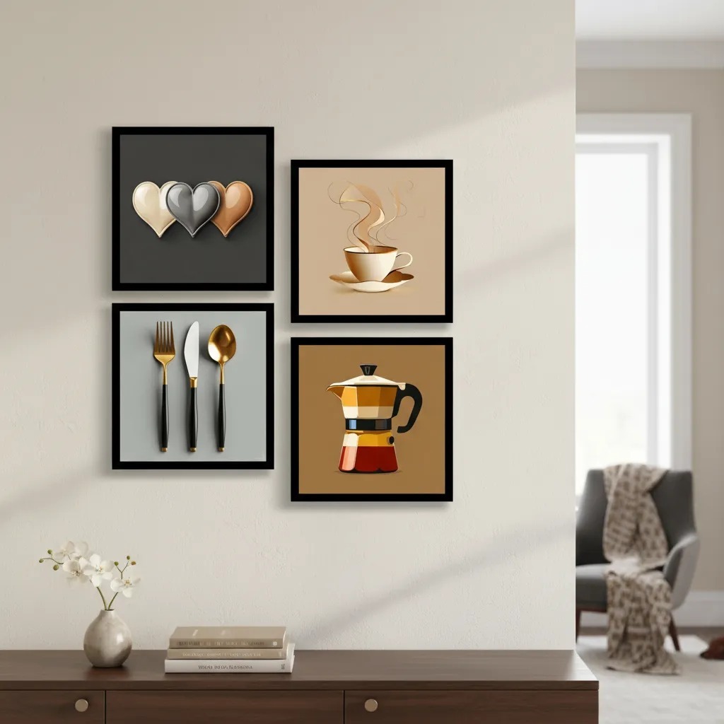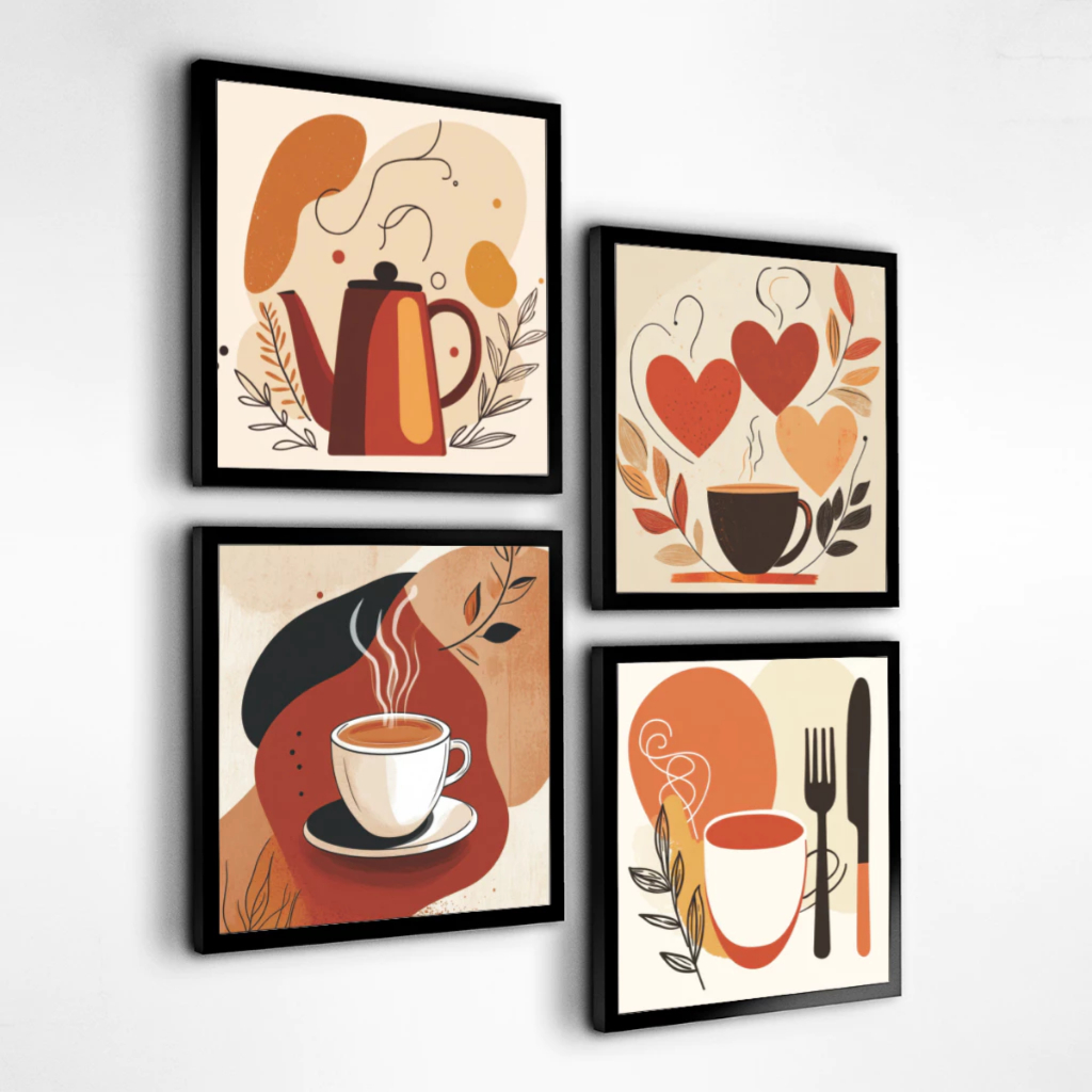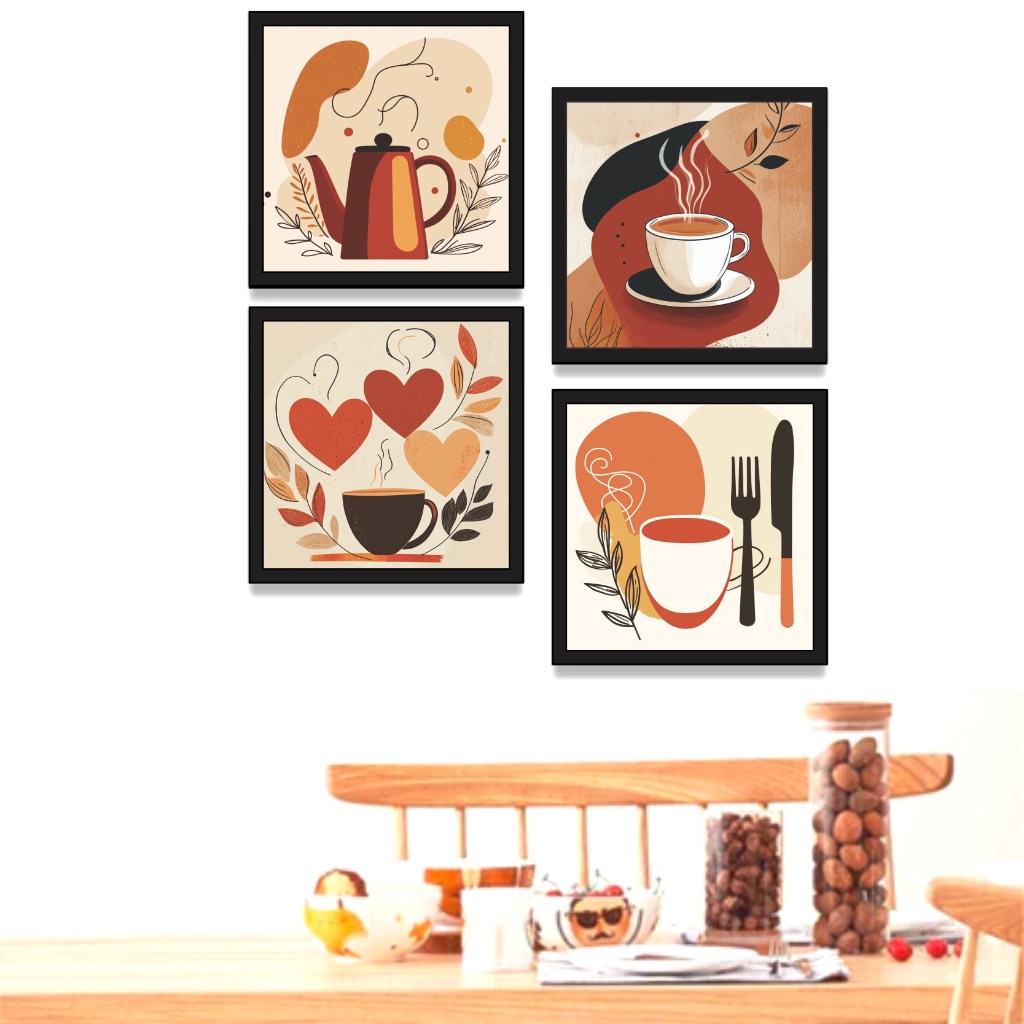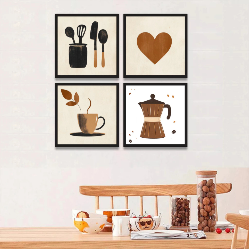 Kit 4 Quadros Decorativos Café Xícara Cozinha Cantina Mdf