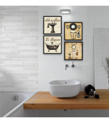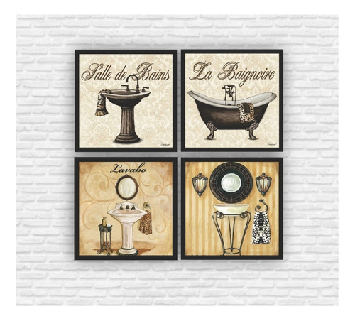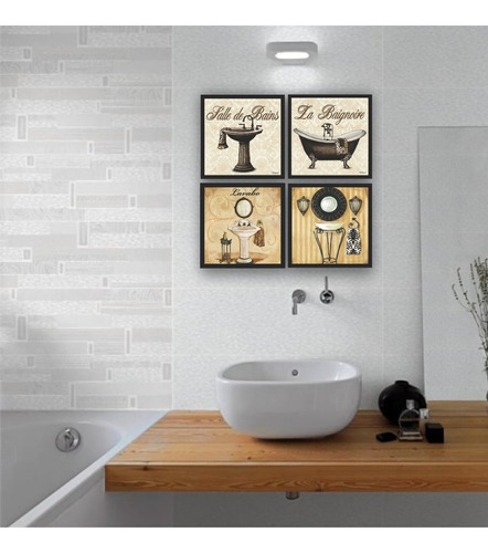 Kit 4 Quadros Decorativos Lavabo Toalete Banheiro Retro