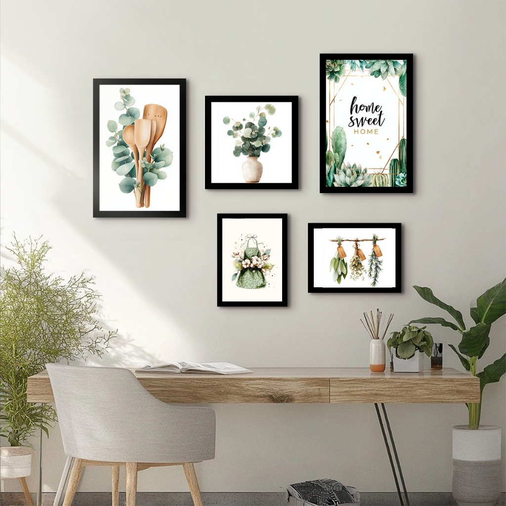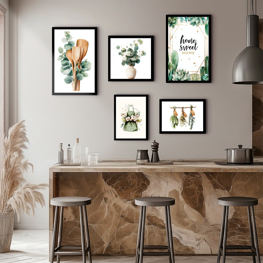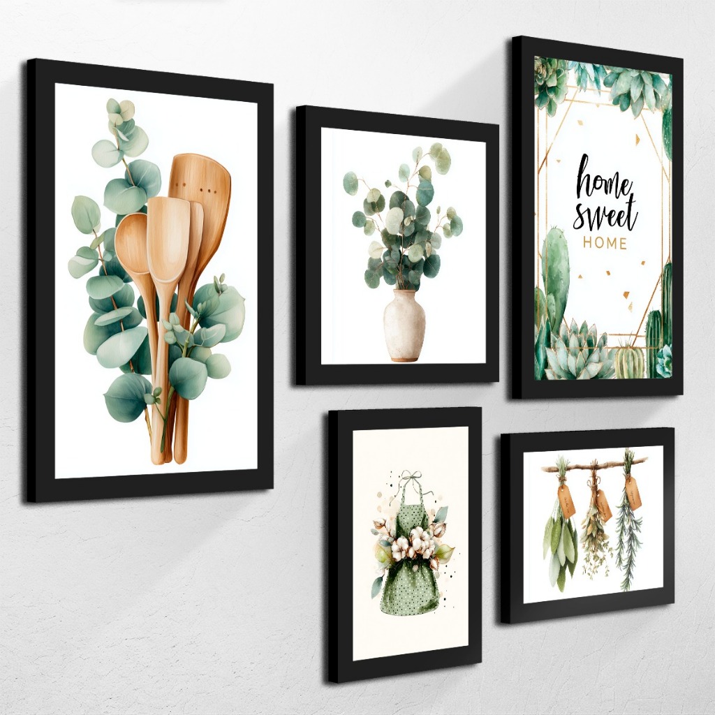 Kit Home 5 Peças Talheres Cozinha Panela Folhas Temperos Para Cozinha Lar Doce Lar Hall