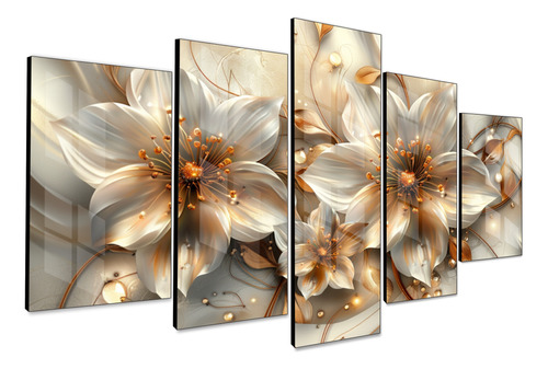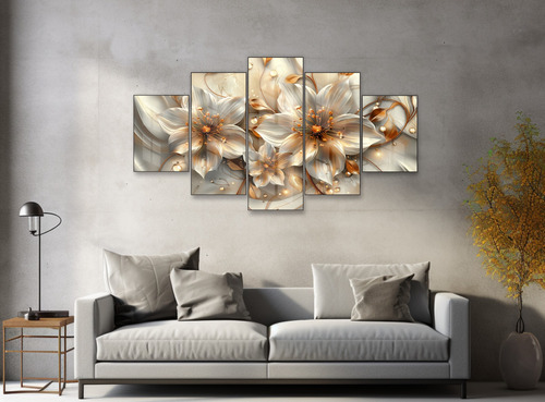 Kit 5 Quadros Decorativos Mosaico Lírio Bronze Flor Sala Ys