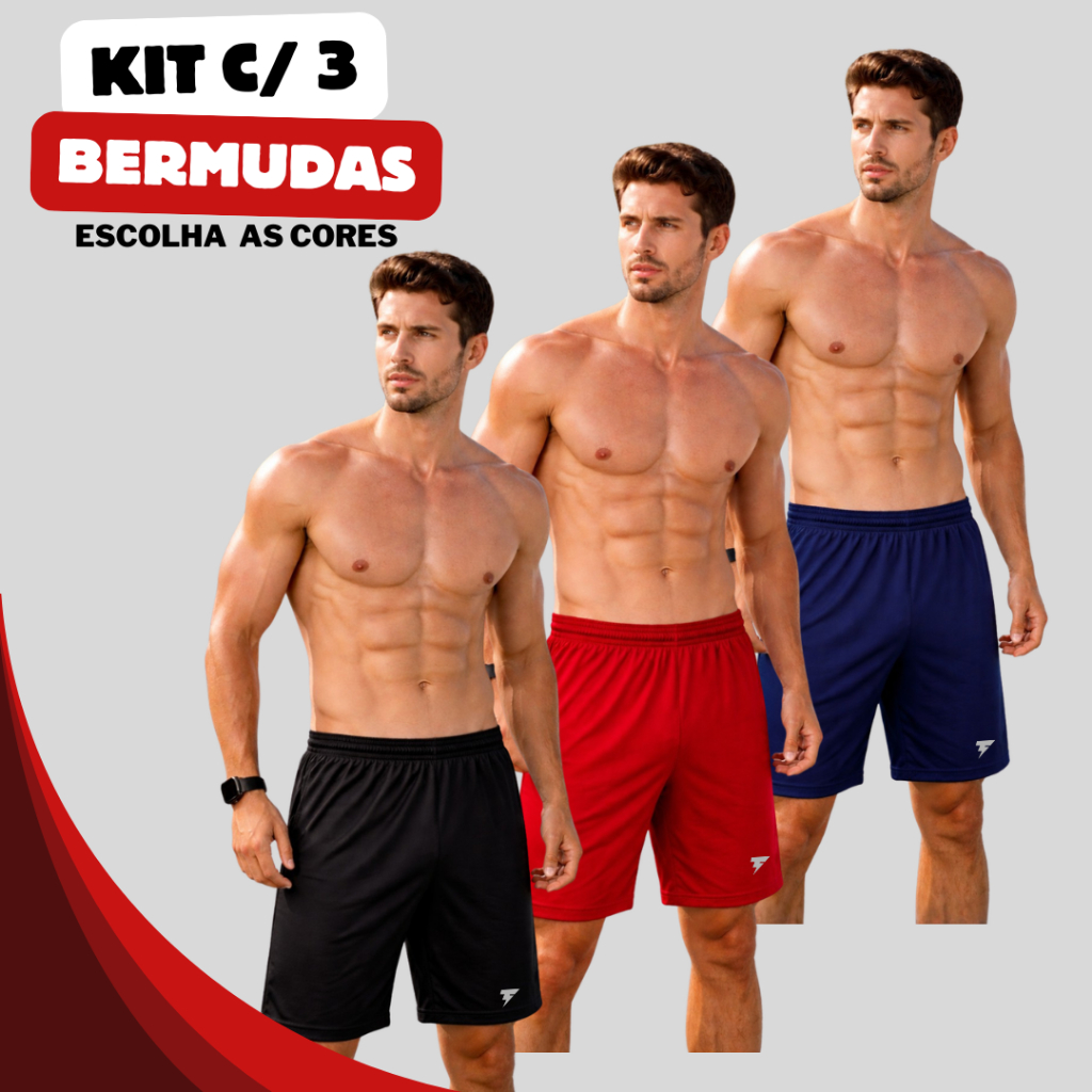 Kit com 3 Bermuda Masculina Esportiva Shorts para Futebol Academia Caminhada Calção Refletivo Dryfit