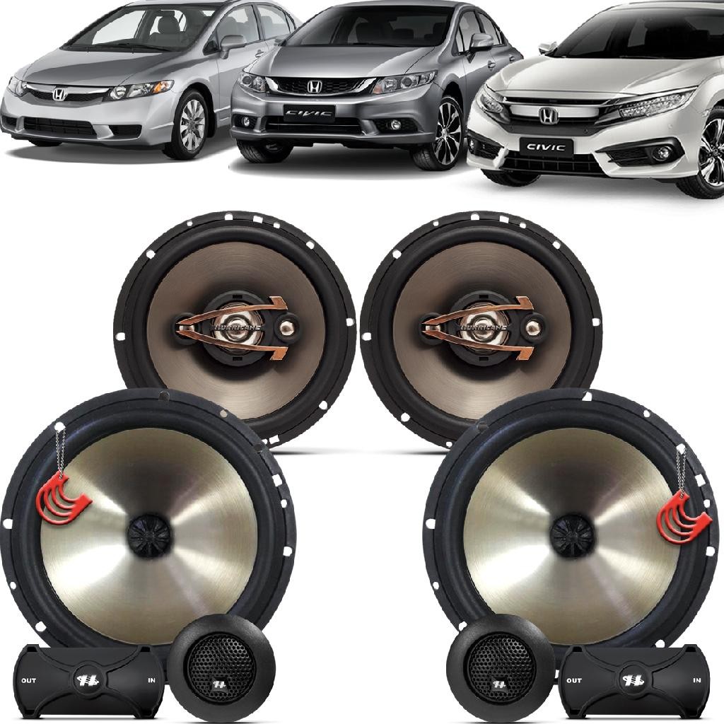 Kit Alto Falantes Dianteiros + Traseiros Honda Civic 2006 até 2021 - Hurricane Platino 640w