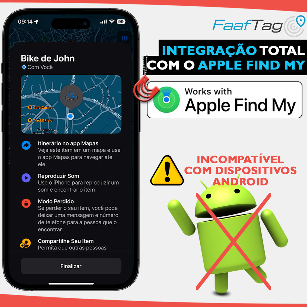 Tag Rastreador pelo App Buscar iPhone Faaftech Faaftag - Mini Gps Perdido Roubo Som - Similar Airtag