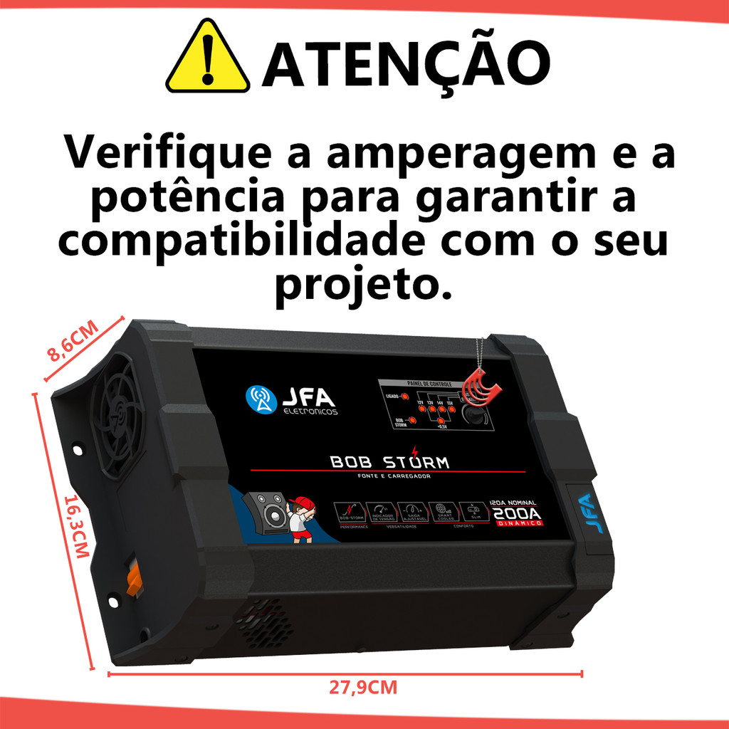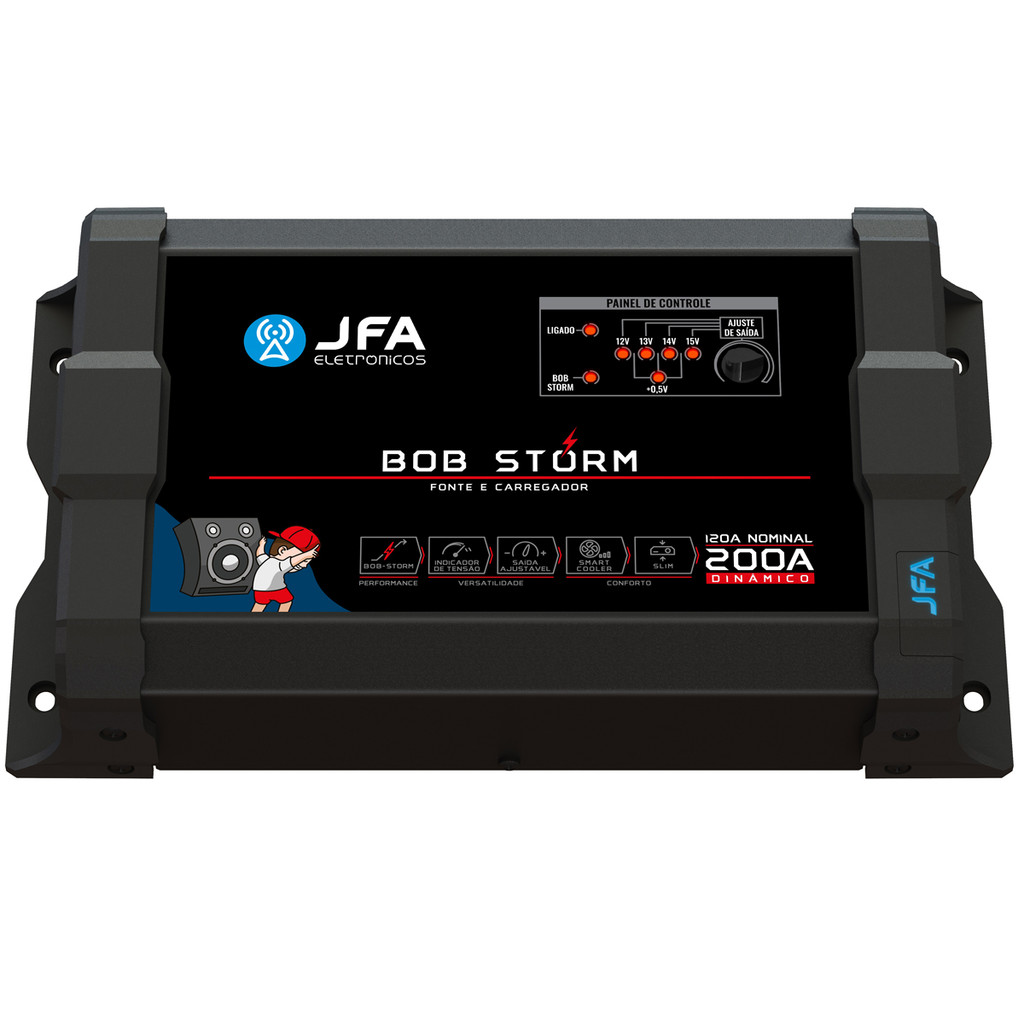 Fonte JFA Bob Storm 200A Bivolt Carregadora e Bateria Para Caixa Bob Ativa Trio Home Som Casa