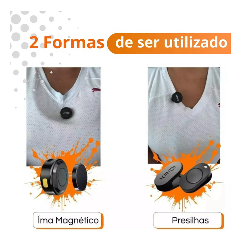Microfone Lapela Sem Fio Duplo Kaidi Profissional Portátil Imã Redondo Anti Ruído Tipo C iPhone Gravação Celular