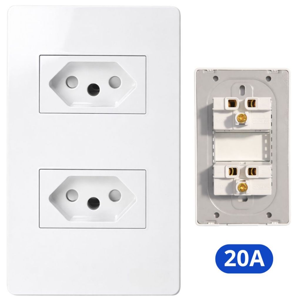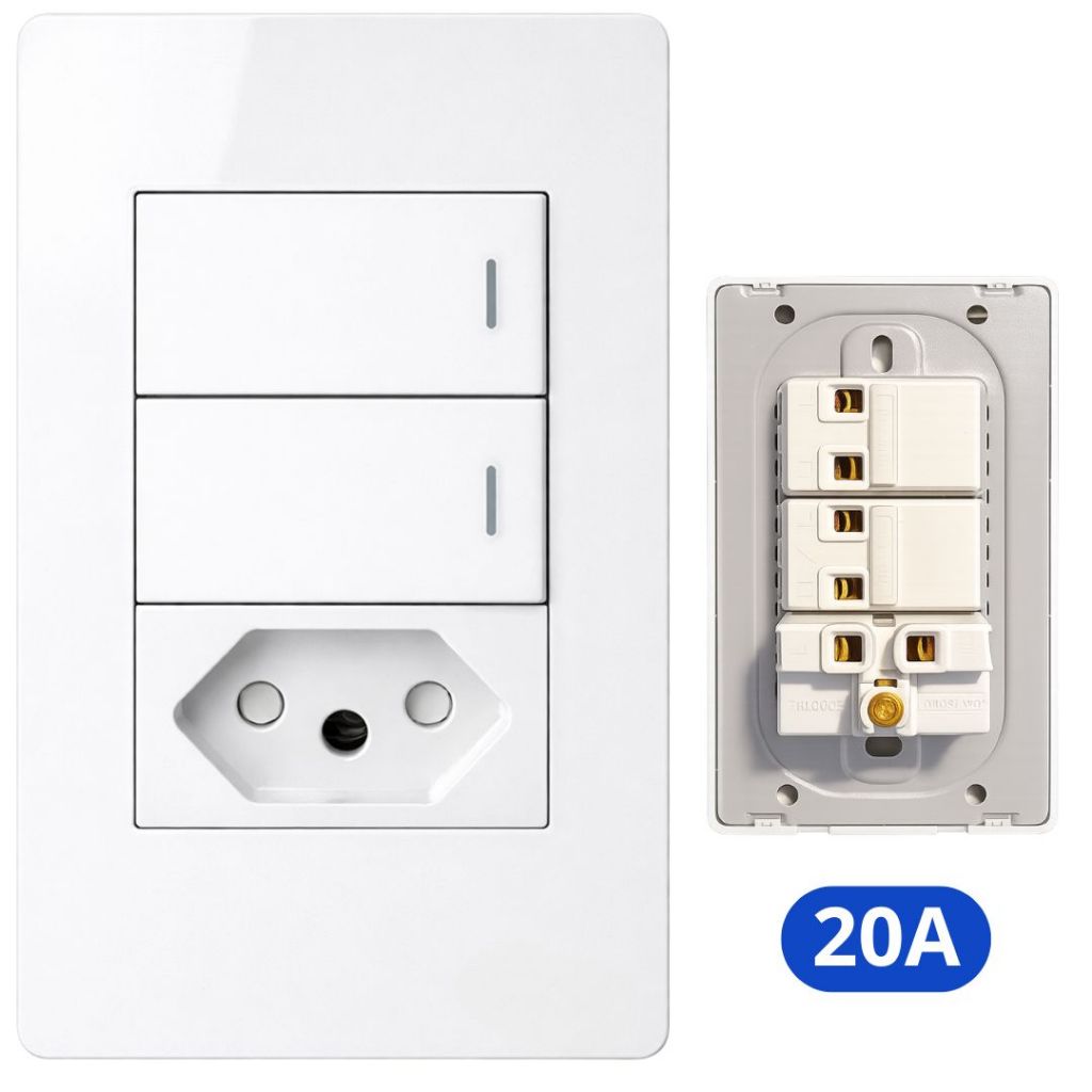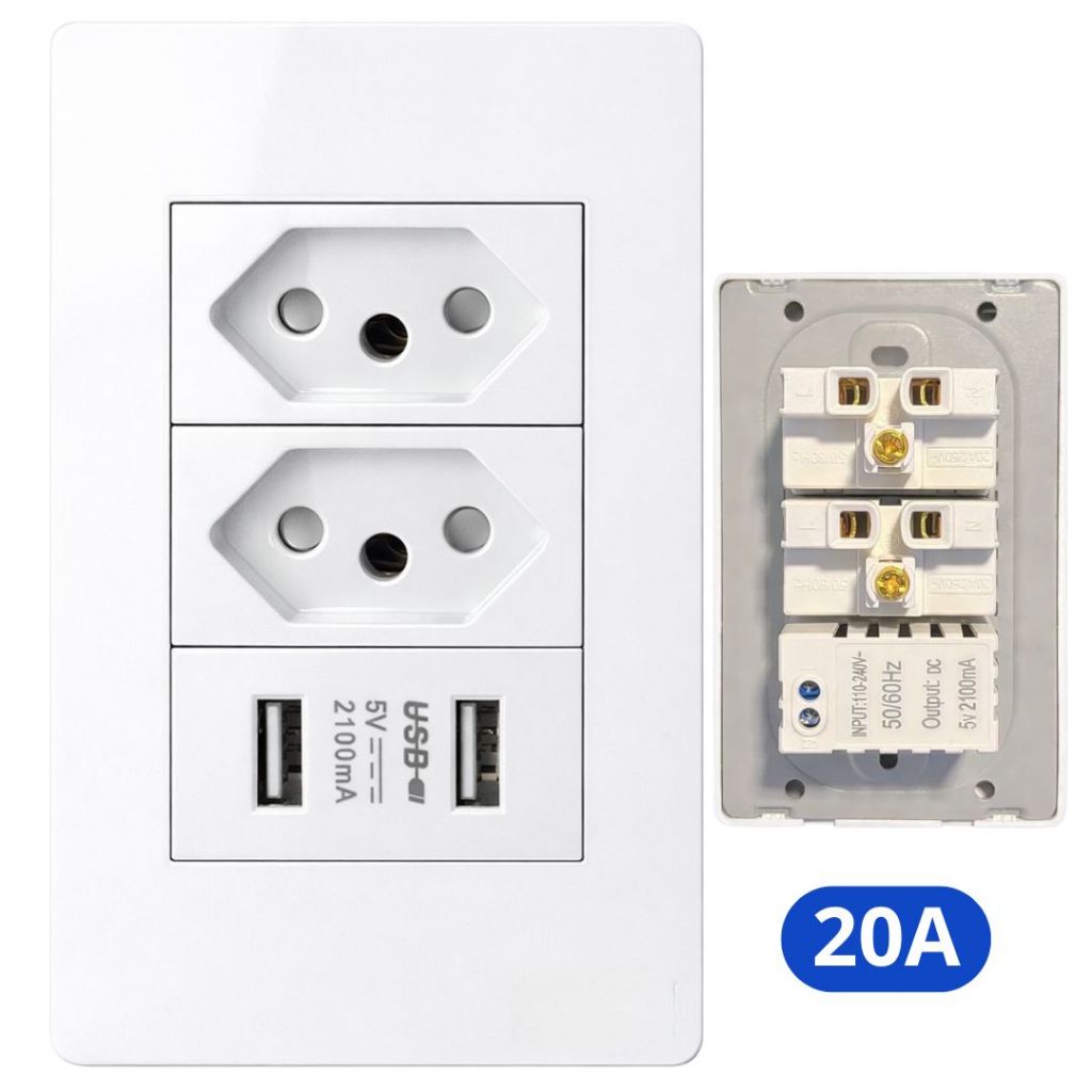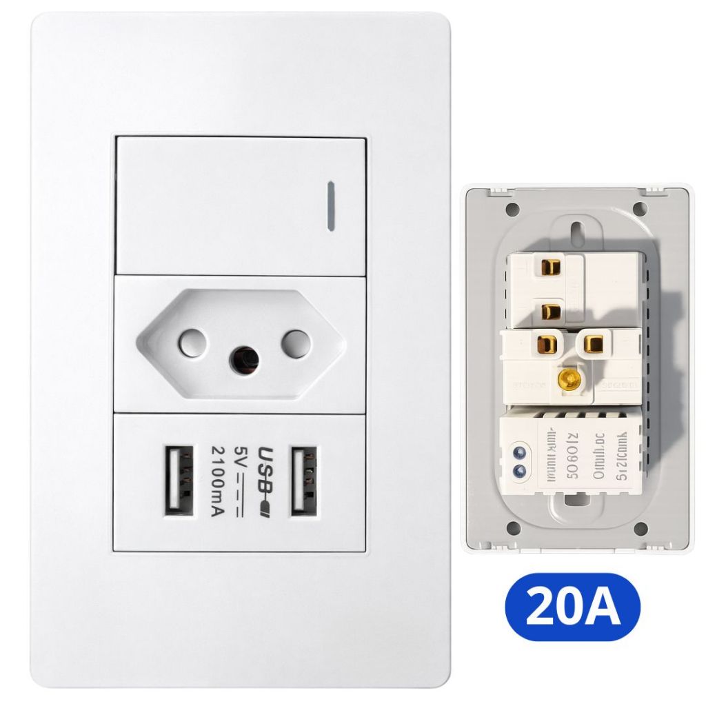 Tomada e Interruptor Branco 4x2 Modular 20A Embutir Simples USB Linha Completa