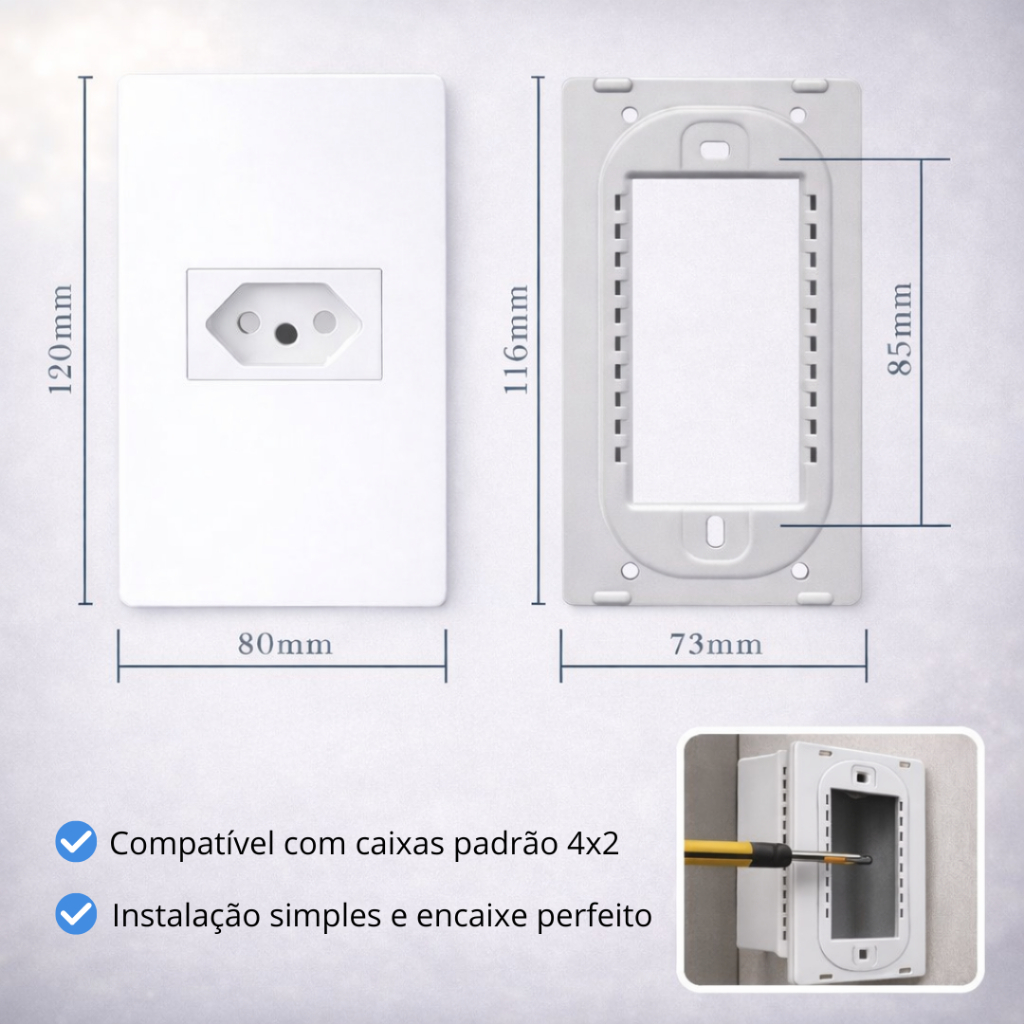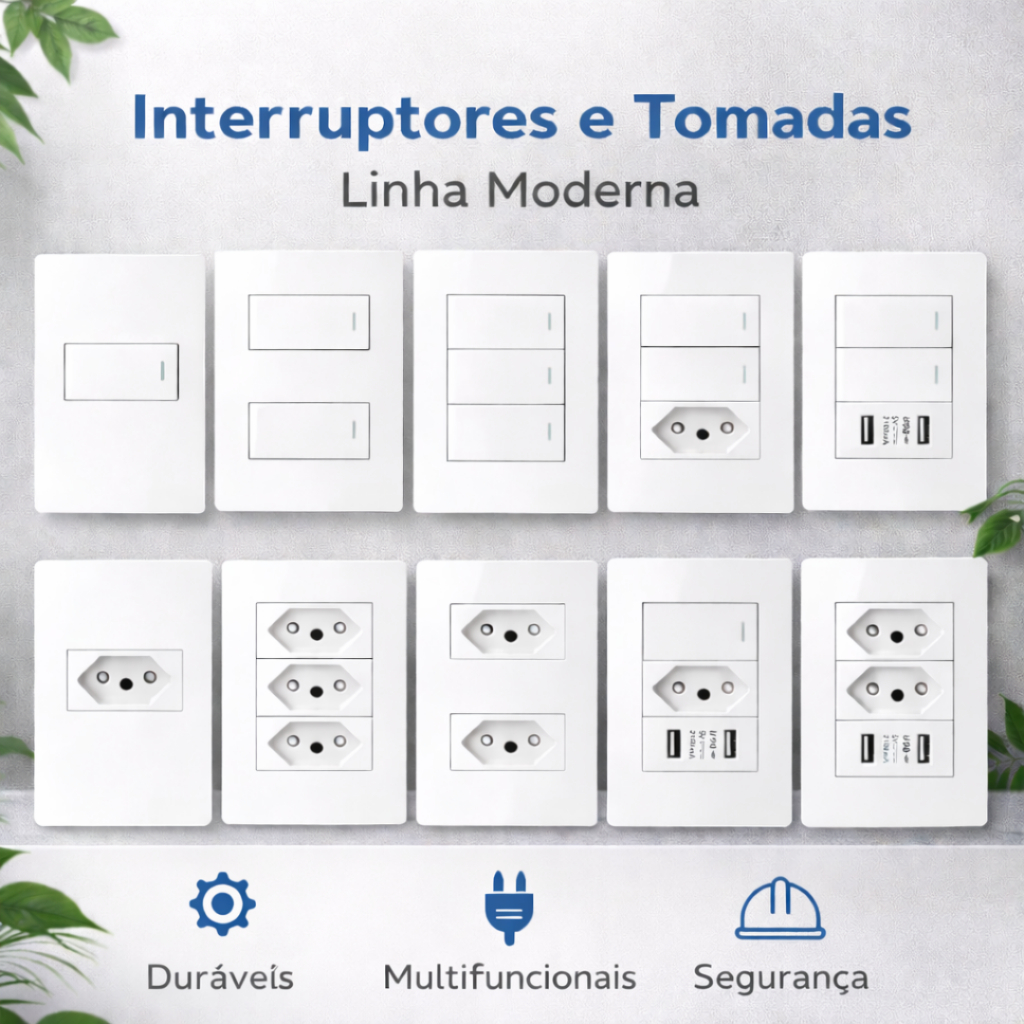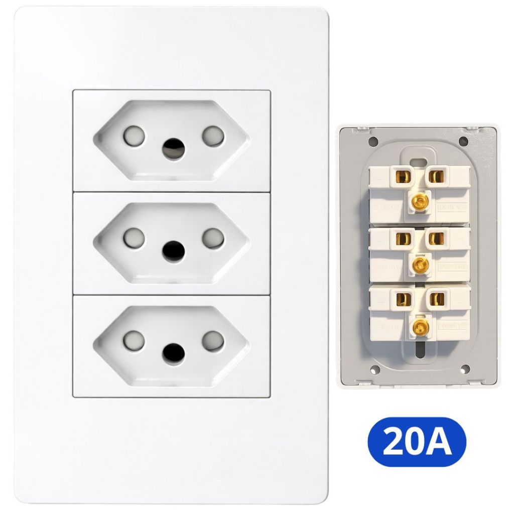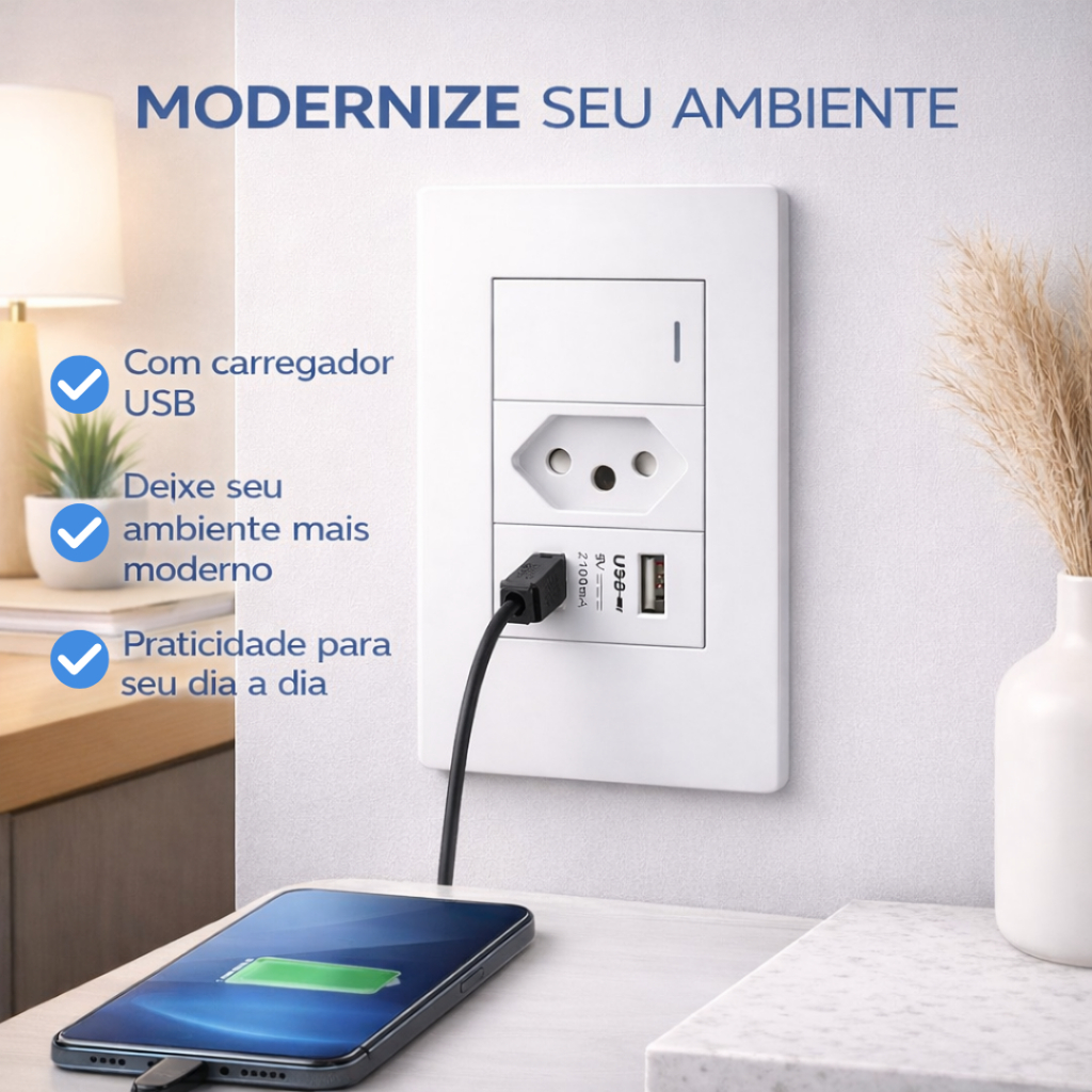 Tomada e Interruptor Branco 4x2 Modular 20A Embutir Simples USB Linha Completa