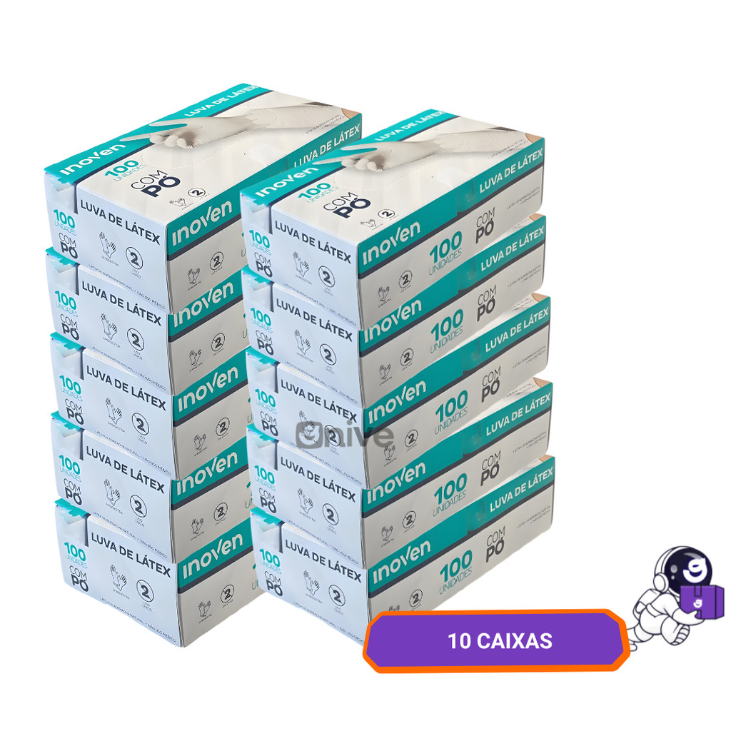 Kit Até 10 Caixas de Luva Látex Descartável Procedimento P M G Com Pó 500 a 1000 Unidades