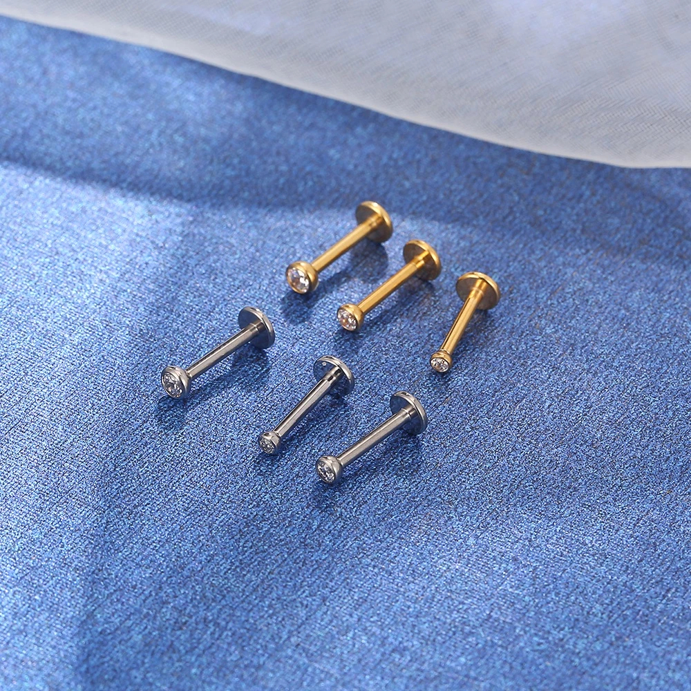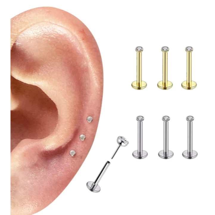 Kit 3 Piercing Titânio Push Pin Australiano Zircônia Ponto de Luz