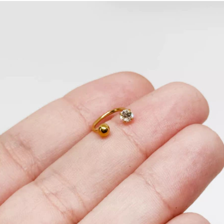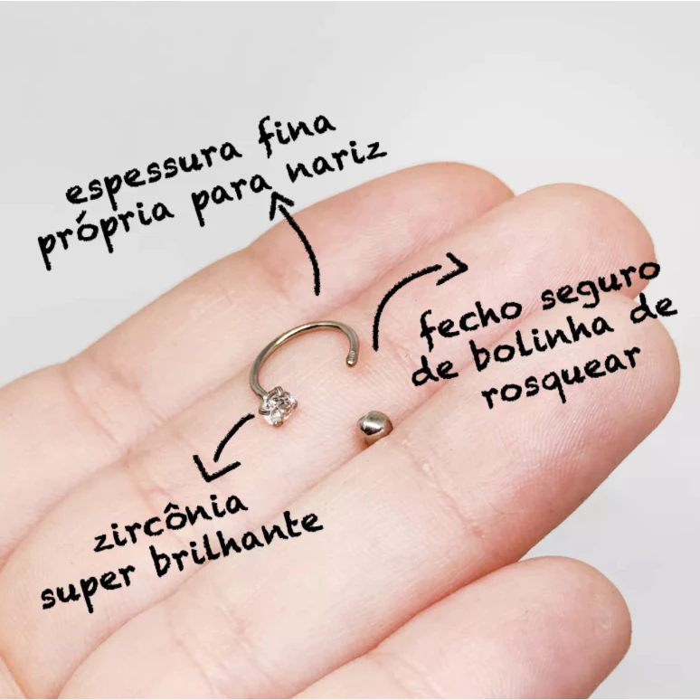 Piercing Aço Cirúrgico Folheada Ferradura Fina Nostril Helix Tragus Zircônia Brilhante