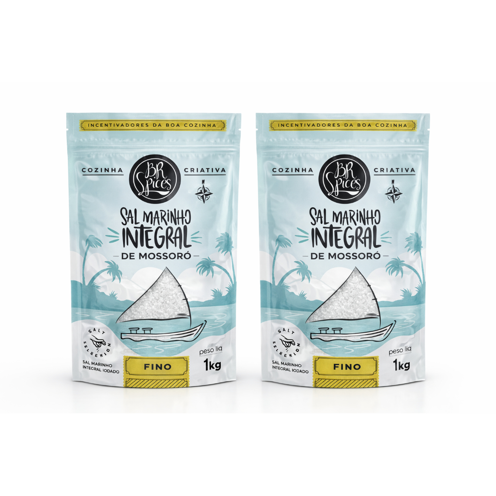 Kit 2 Sal Marinho Fino BR Spices 1kg Cada – Sal Natural para Cozinha e Temperos - Sal Integral