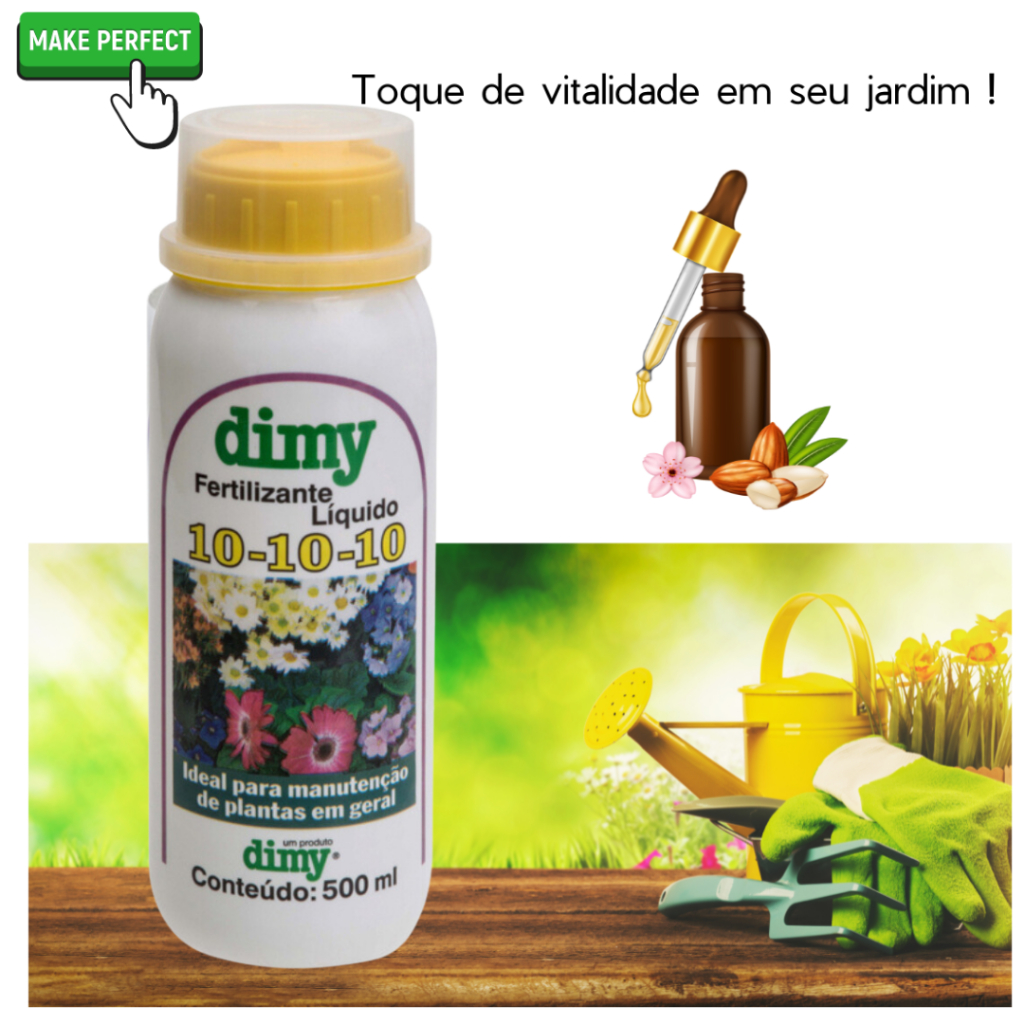 Adubo Fertilizante Dimy NPK 10-10-10 500ml Plantas Jardim Flores Horta Frutíferas Concentrado Rende até 50 litros