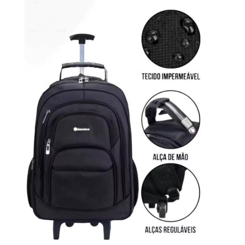 Mochila Rodinha Impermeável Reforçada, Trabalho, Faculdade (Unisex)