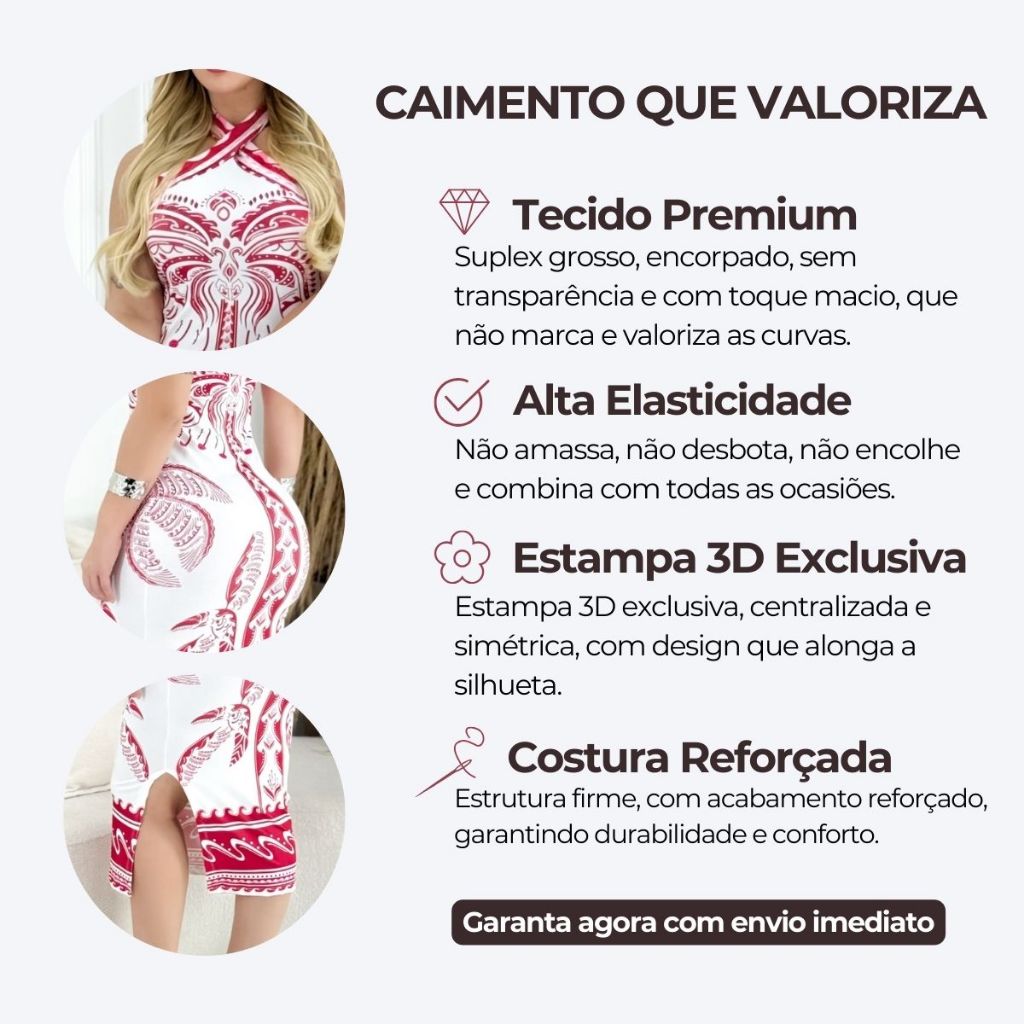 Vestido Casual Estampado 3D Inspiração FA com Amarração, Fenda e Modelagem Tubinho Elegante