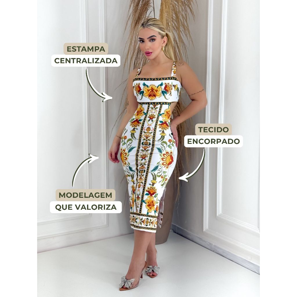 Vestido Tubinho com Modelagem Elegante, Amarração e Fenda Lateral Inspiração FA