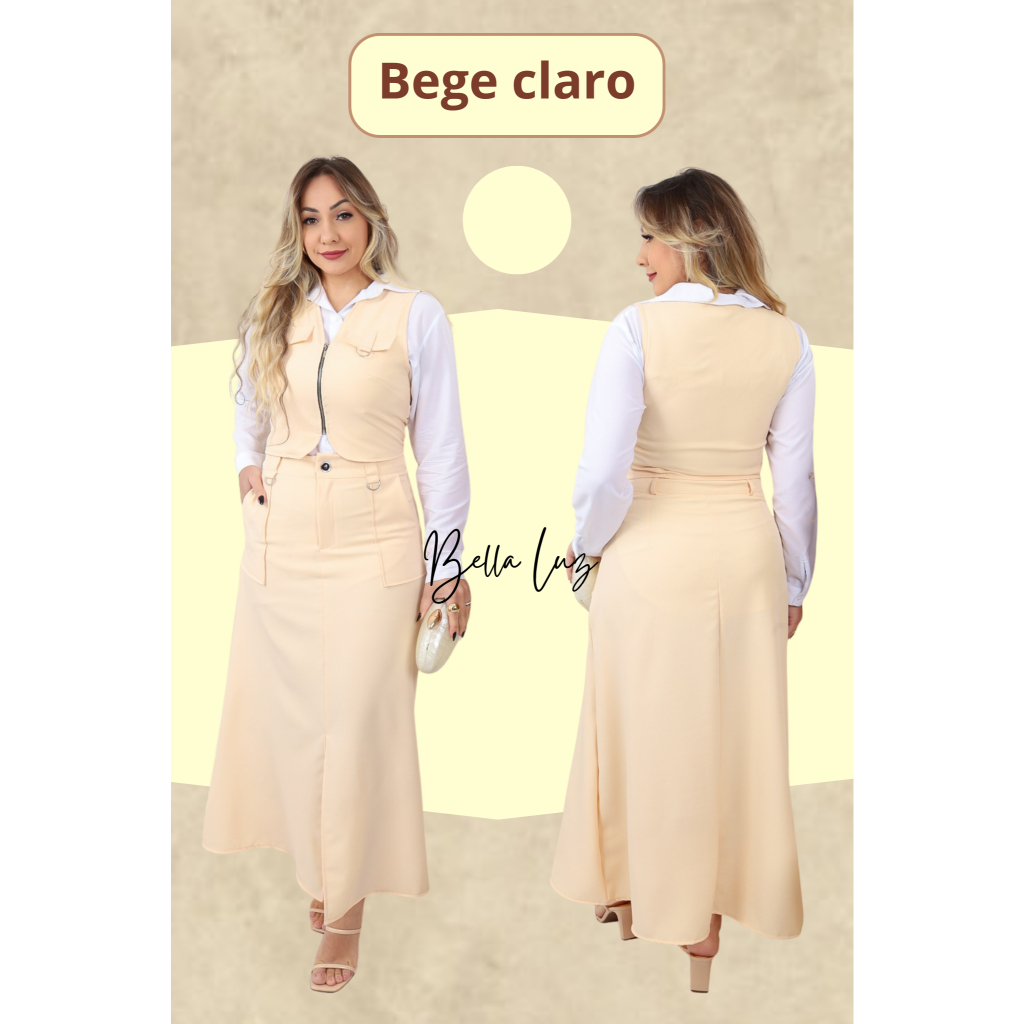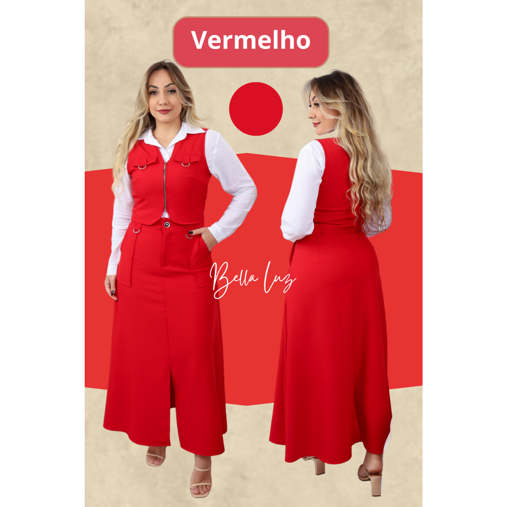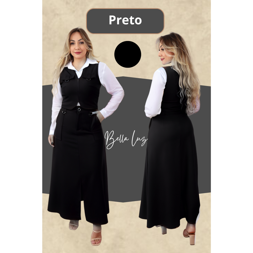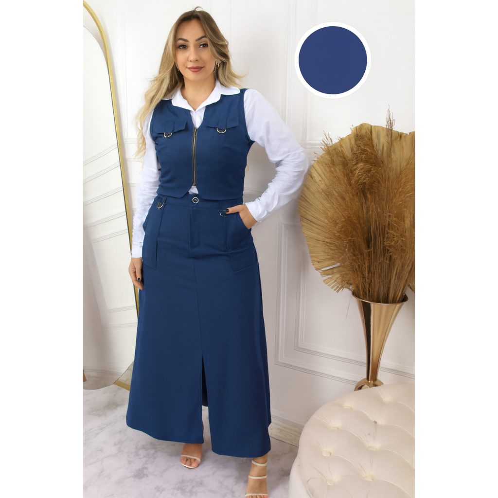 Conjunto Feminino Colete e Saia com o bolso funcional e ziper