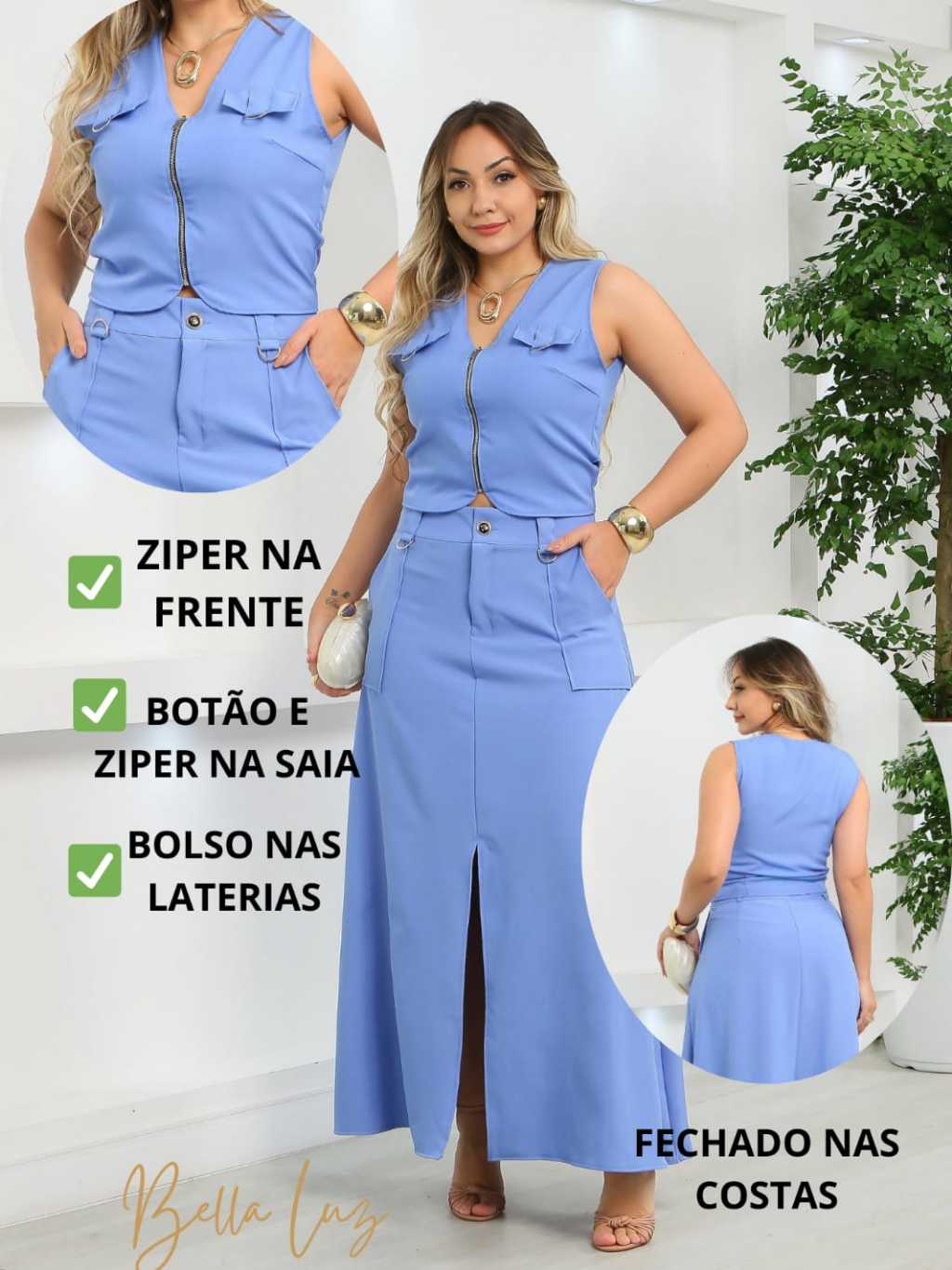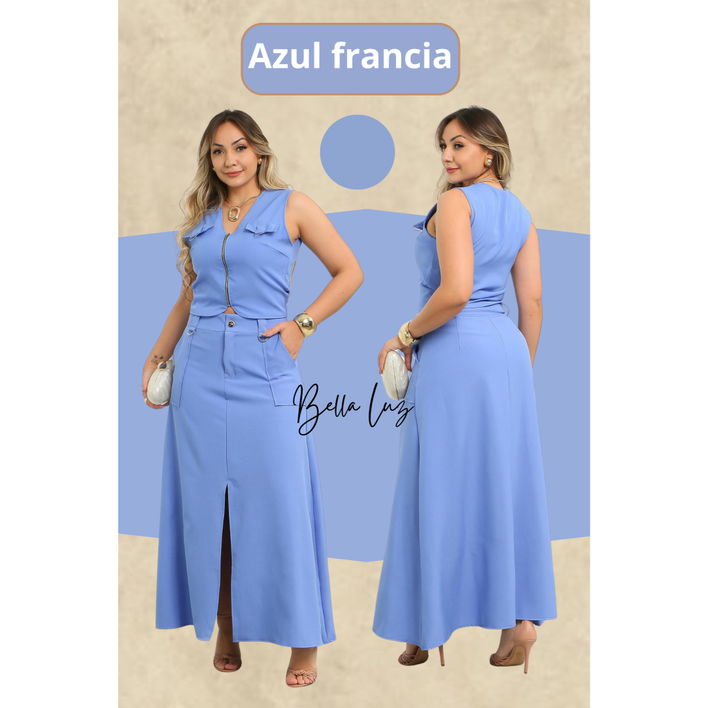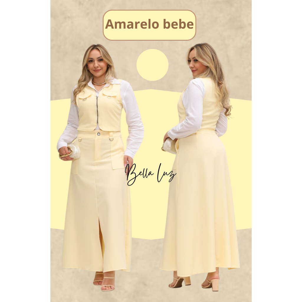 Conjunto Feminino Colete e Saia com o bolso funcional e ziper