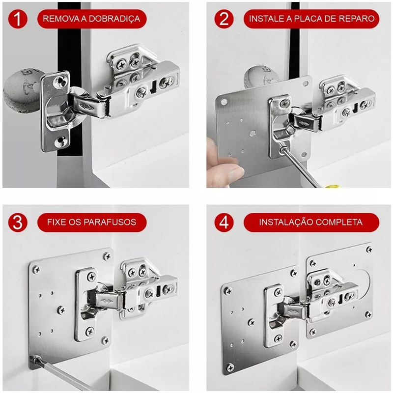 Kit 10 Placas De Reparo Para Consertar Dobradiça Armário Mdf