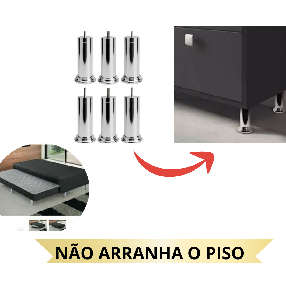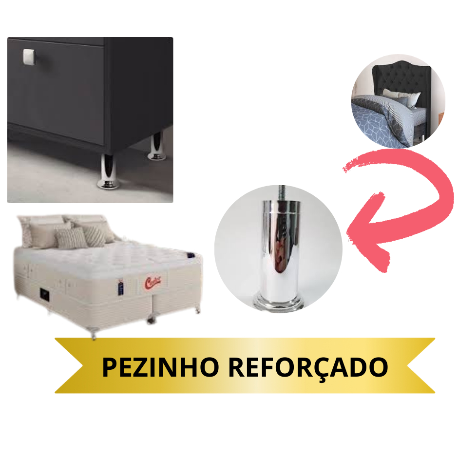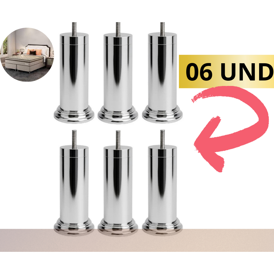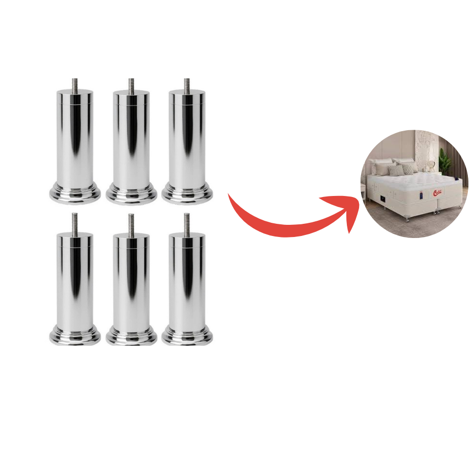 Pés cama box Cromados 12cm com parafuso – Reforçado Universal Ortobom Probel kit com 06