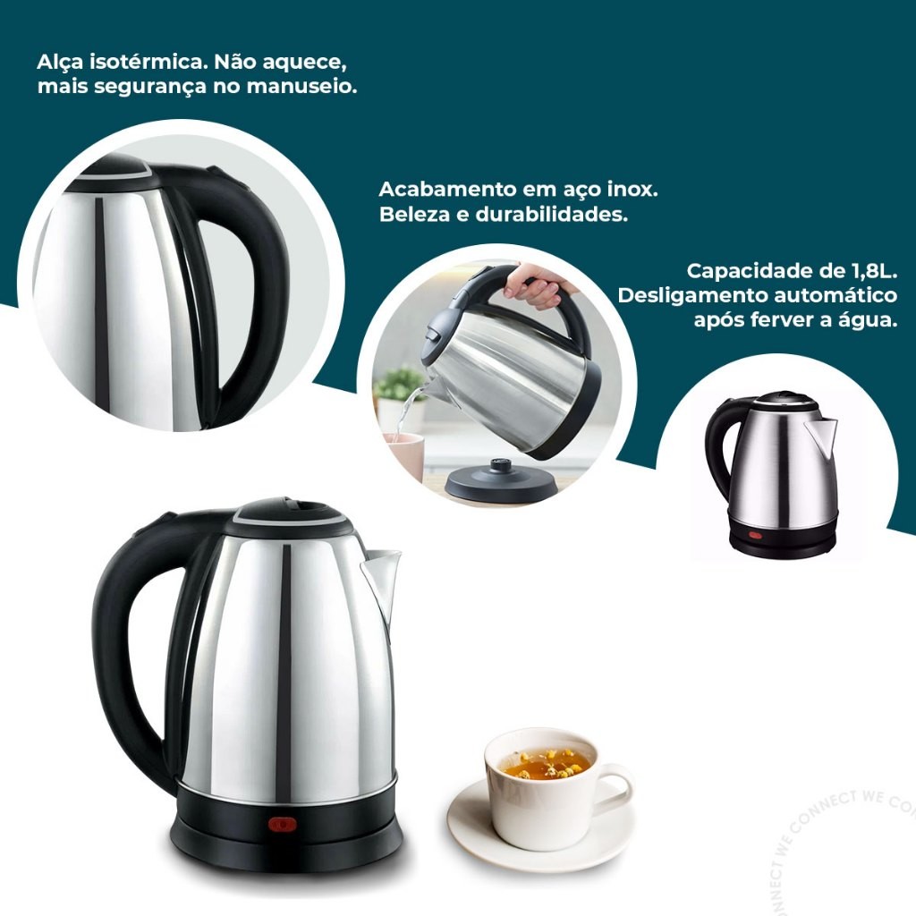 Chaleira Elétrica Inox 1,8L 110V Térmica Café Chá Água Quente Desligamento Automático Ferve Rápido