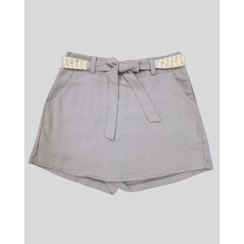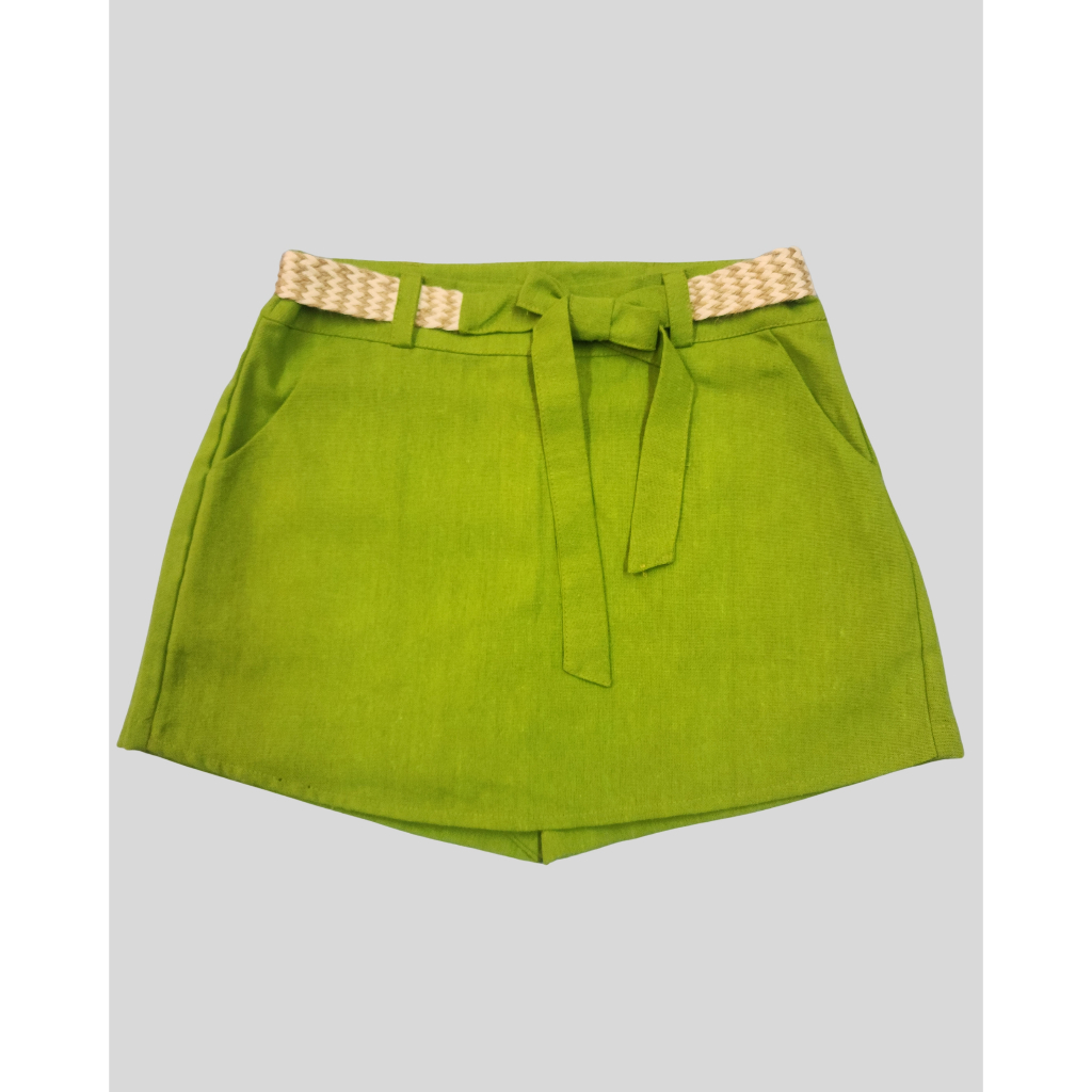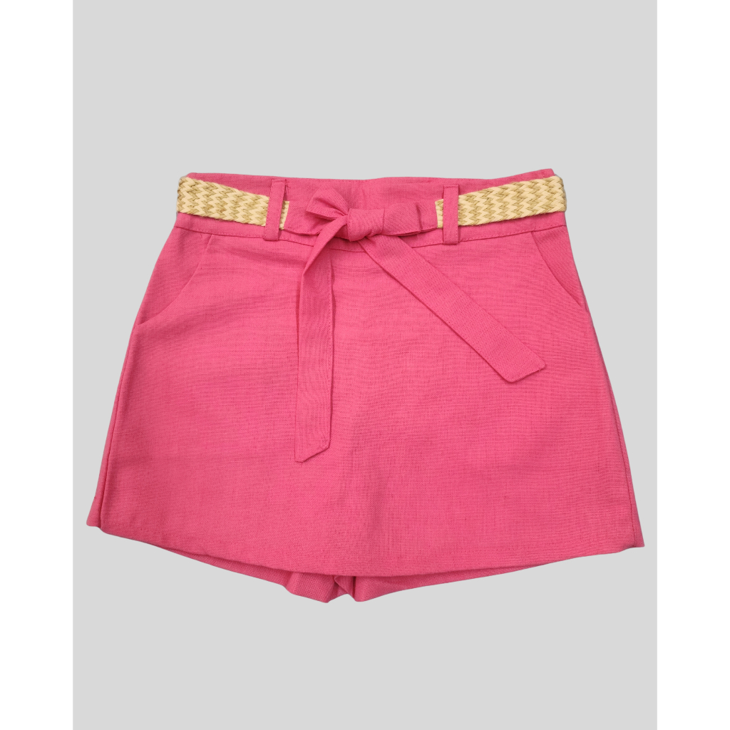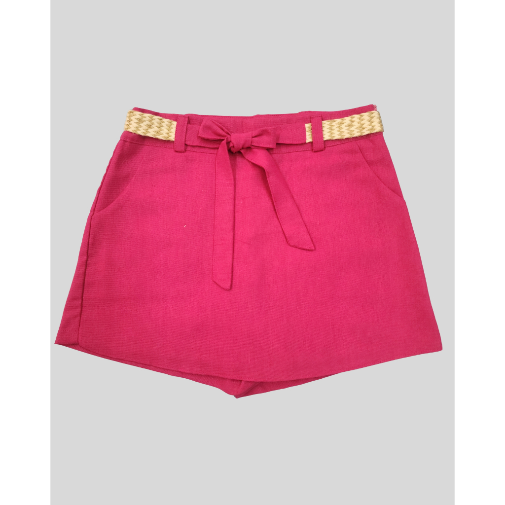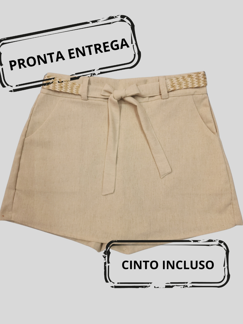 Short Saia Feminina em Linho (Skort) • Cintura Alta • Short Interno • Cinto de Palha Incluso • P M G
