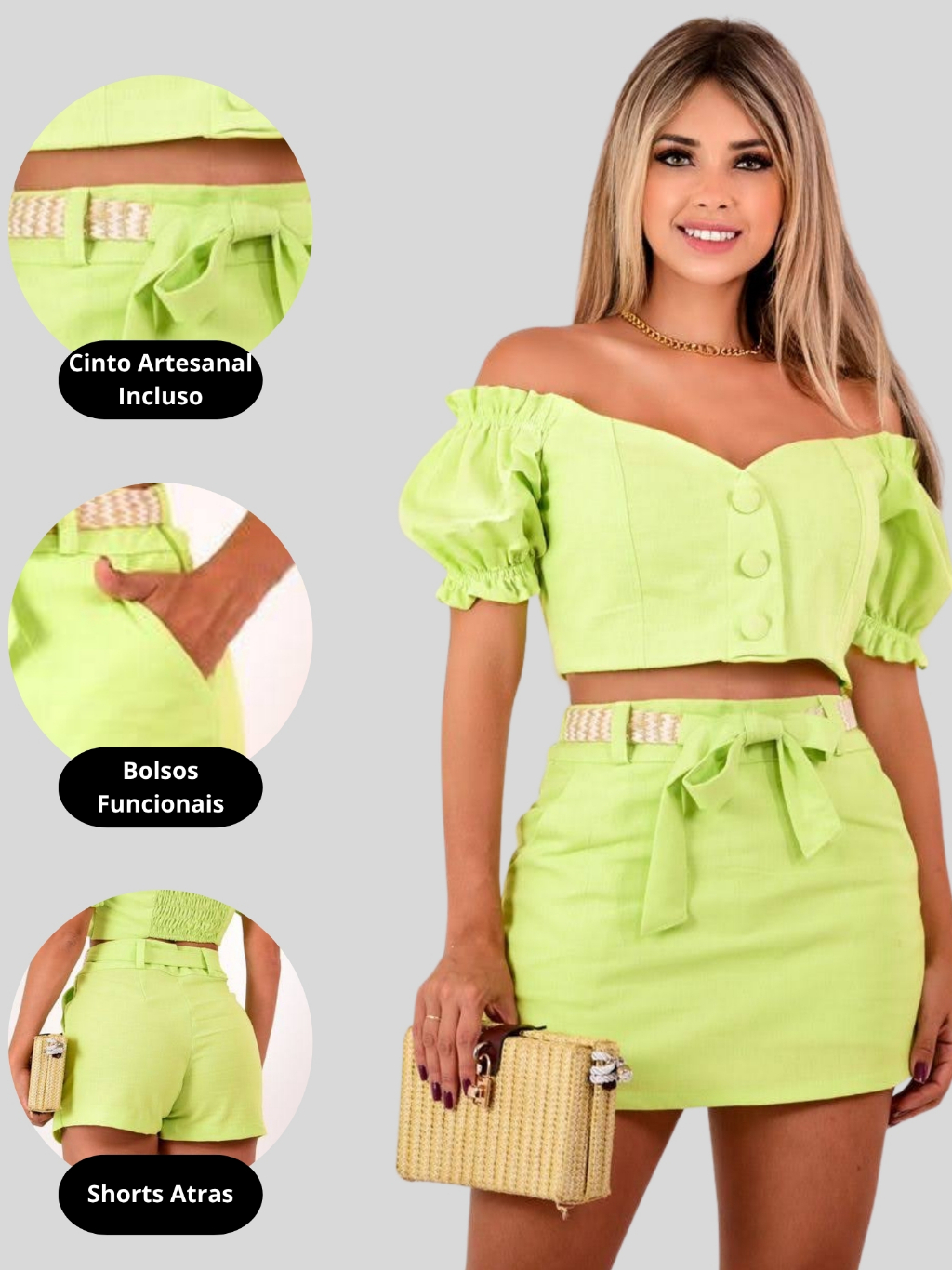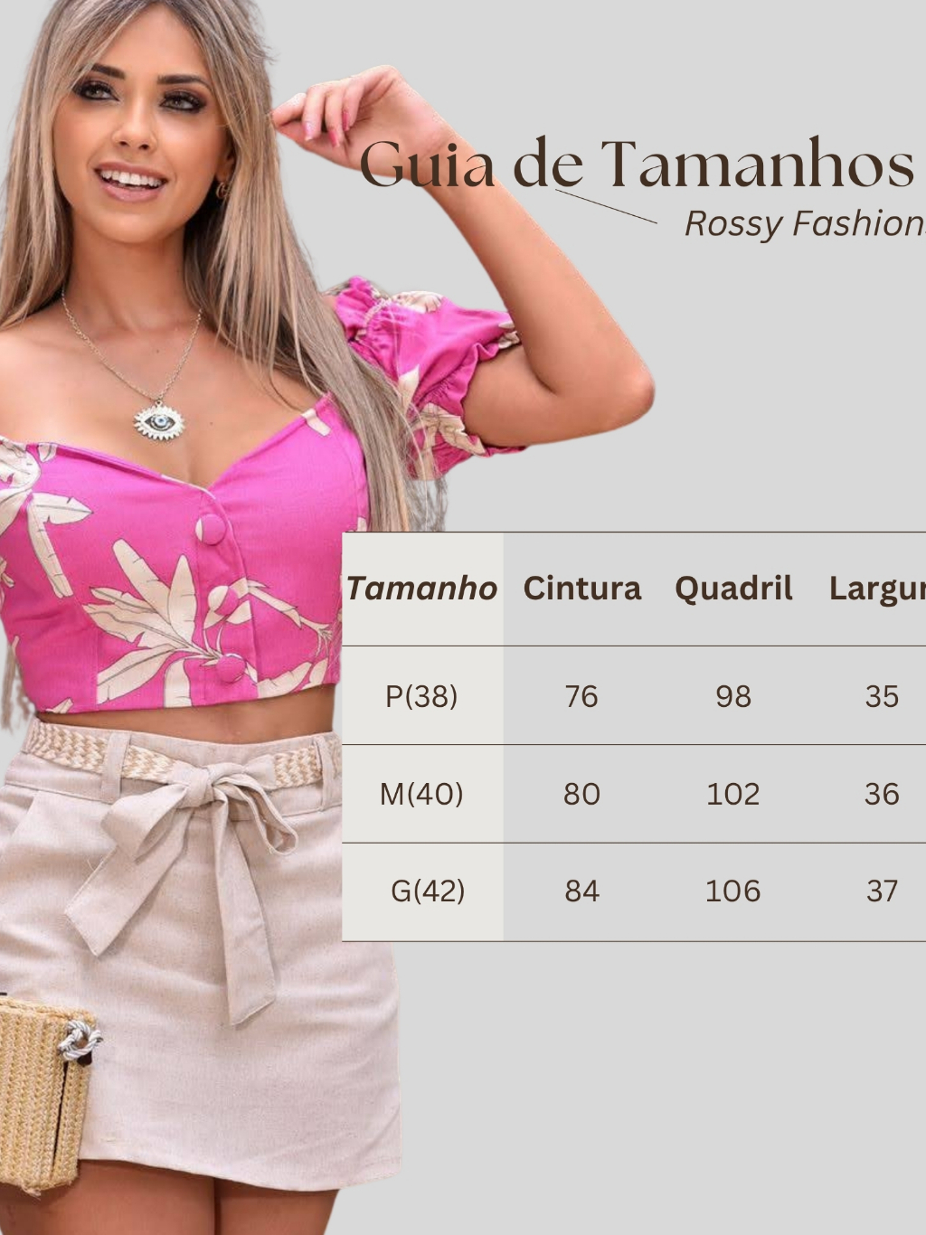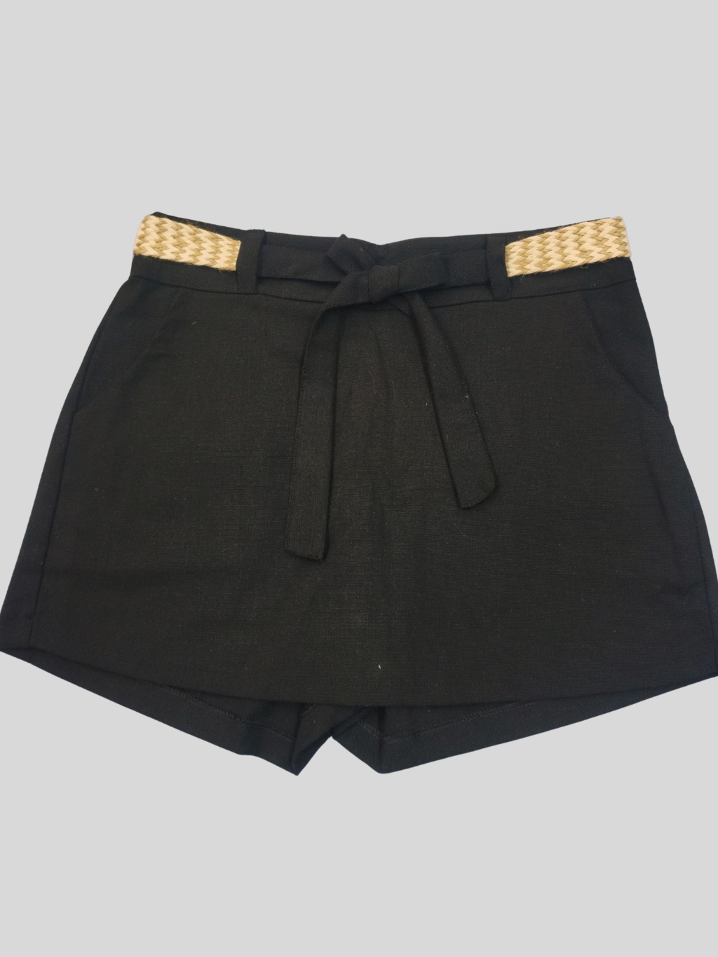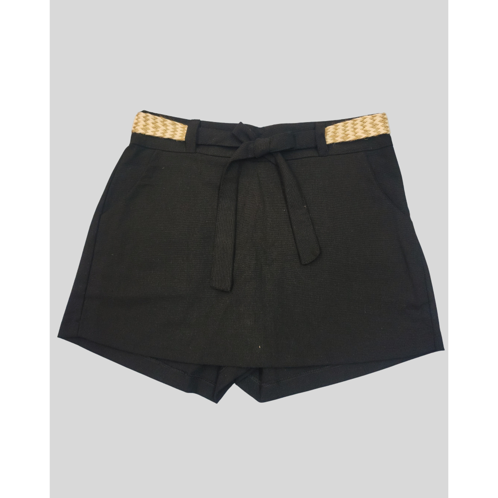 Short Saia Feminina em Linho (Skort) • Cintura Alta • Short Interno • Cinto de Palha Incluso • P M G