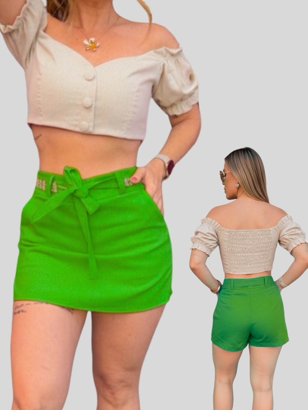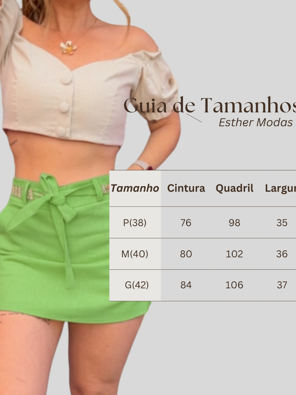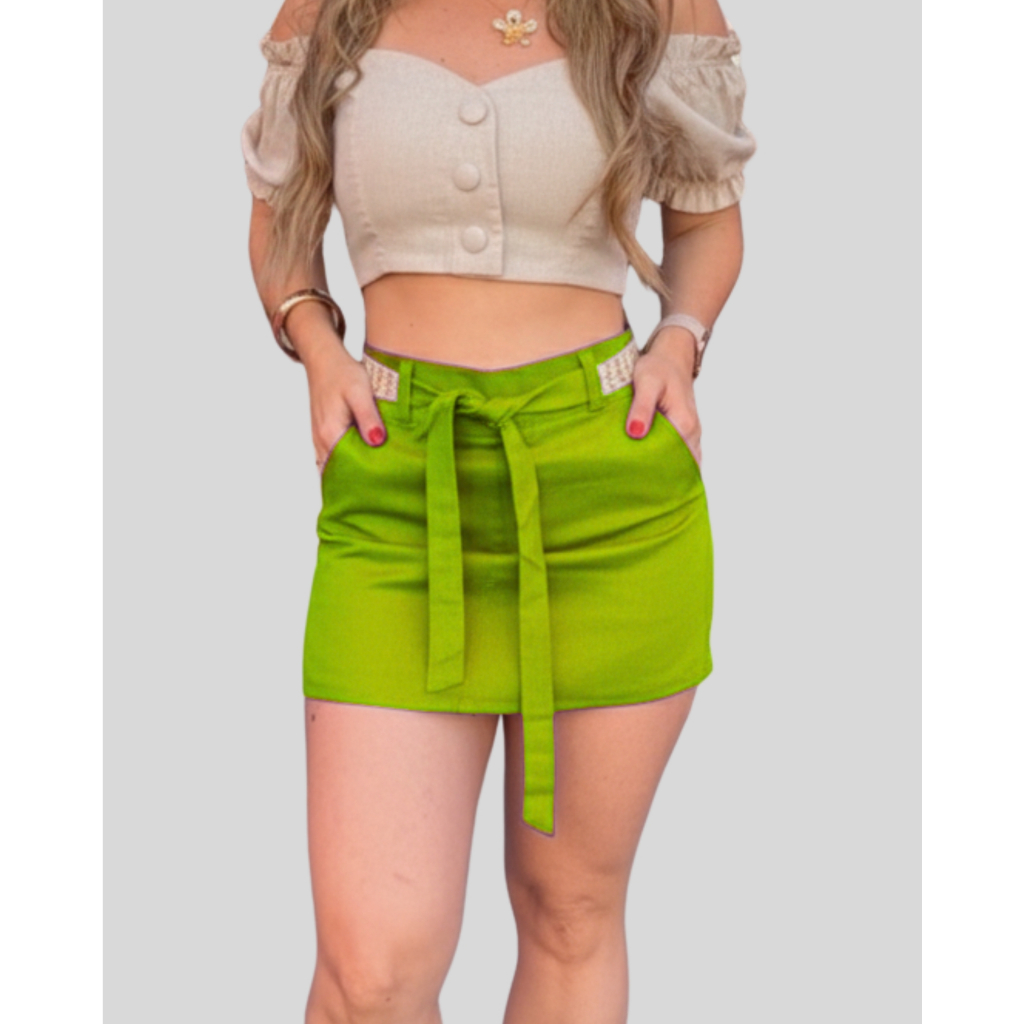 Short Saia de Linho com Cinto de Palha – Shortsaia Feminina | P M G | Pronta Entrega