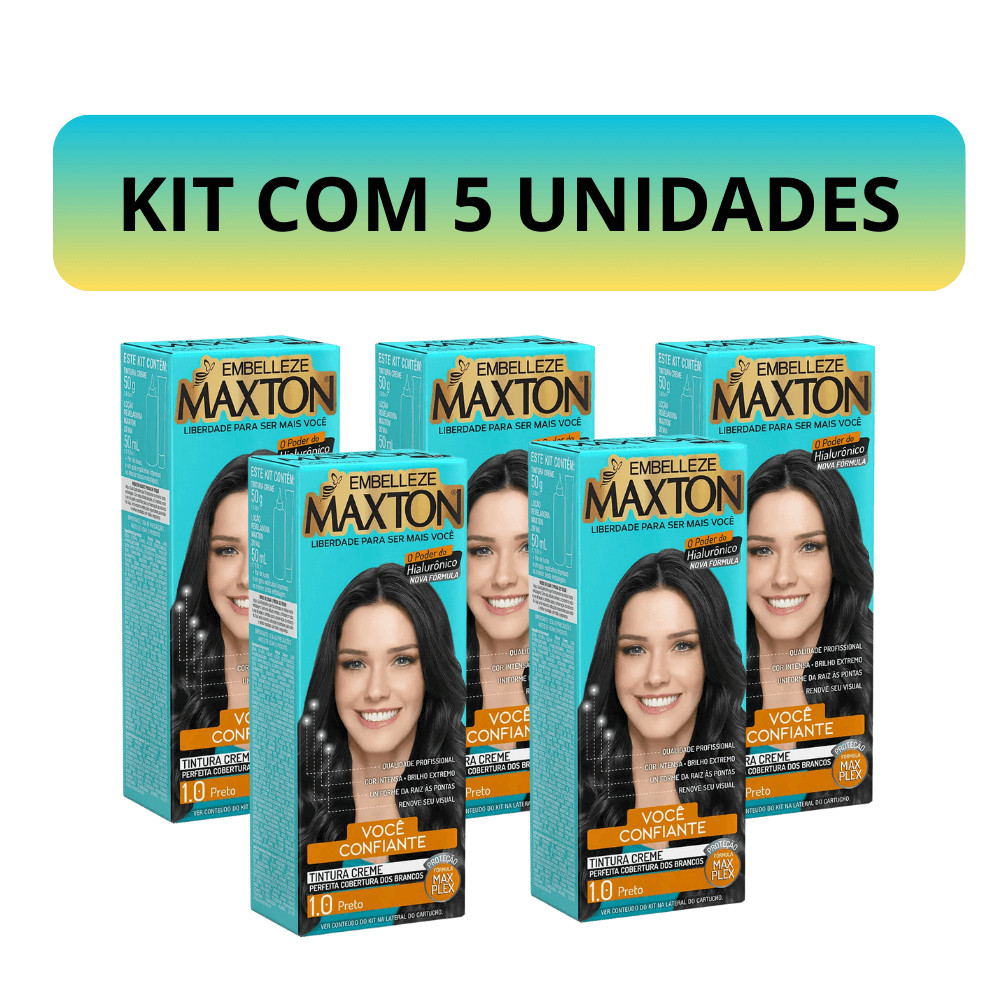 Tinta de Cabelo Maxton Preto 1.0 Você Mais Confiante - KIT COM 5 UNIDADES