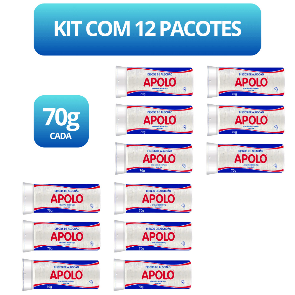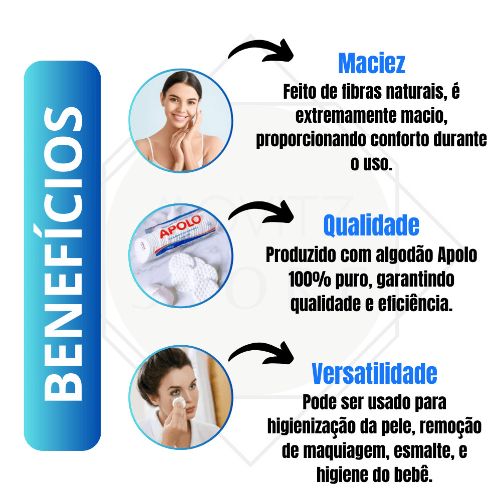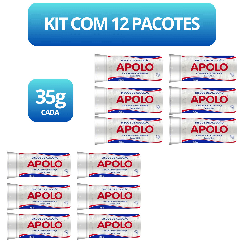 Kit 6 Algodão Disco Apolo 35g Ideal Limpeza e Cuidado Facial Maciez e grande poder de absorção