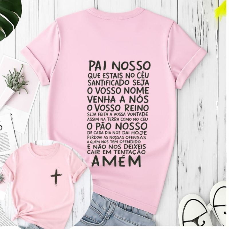 Camiseta T-shirt Blusa Oração Pai Nosso Algodão Premium Católica Religiosa Igreja