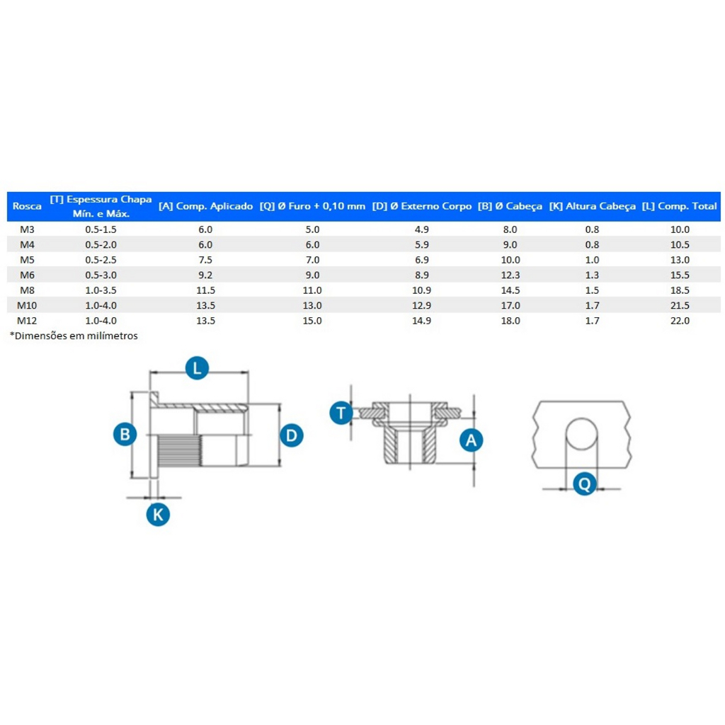 Rebite Rosca Interna M4 Porca Rebite + Parafuso Cilídnrico 5 peças cada