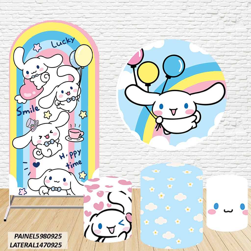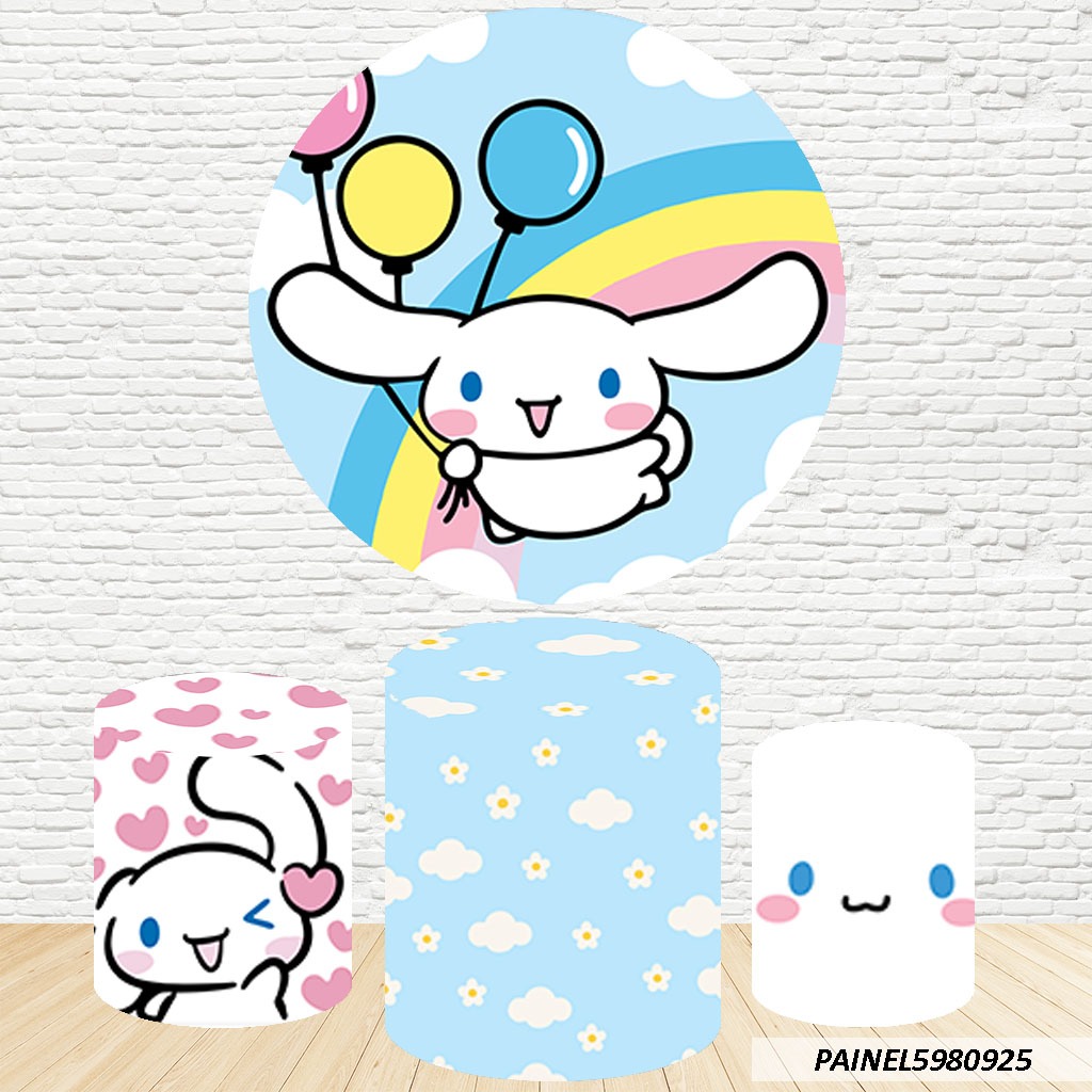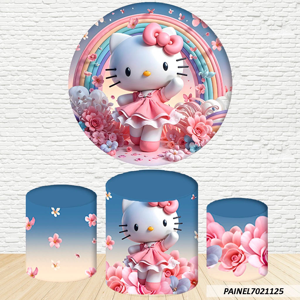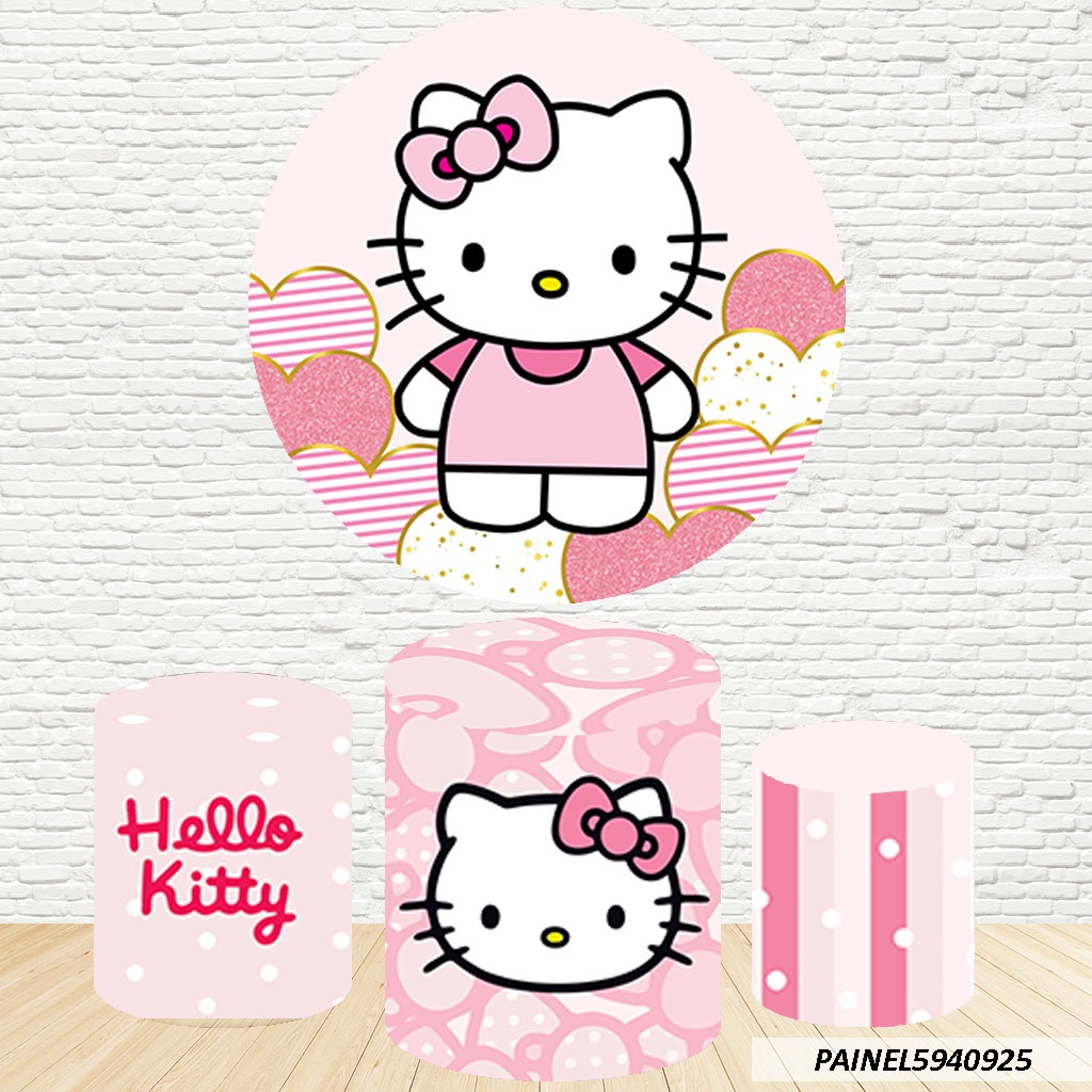 Kit de Capas Painel Redondo Sublimado Hello Kitty 1,50M + Trio Capas de Cilindro C/Elástico