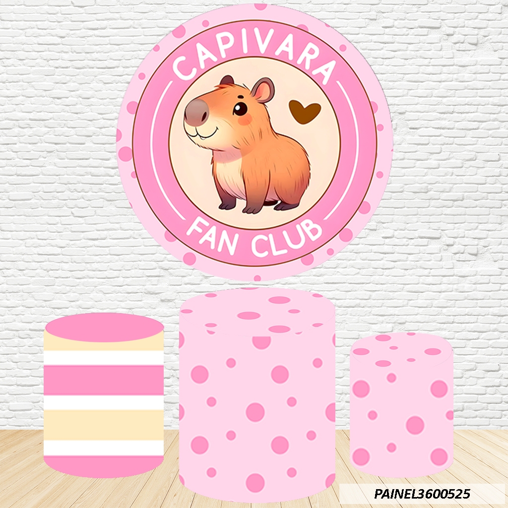 Kit de Capas Painel Redondo Sublimado Capivara 1,50M + Trio Capas de Cilindro C/Elástico