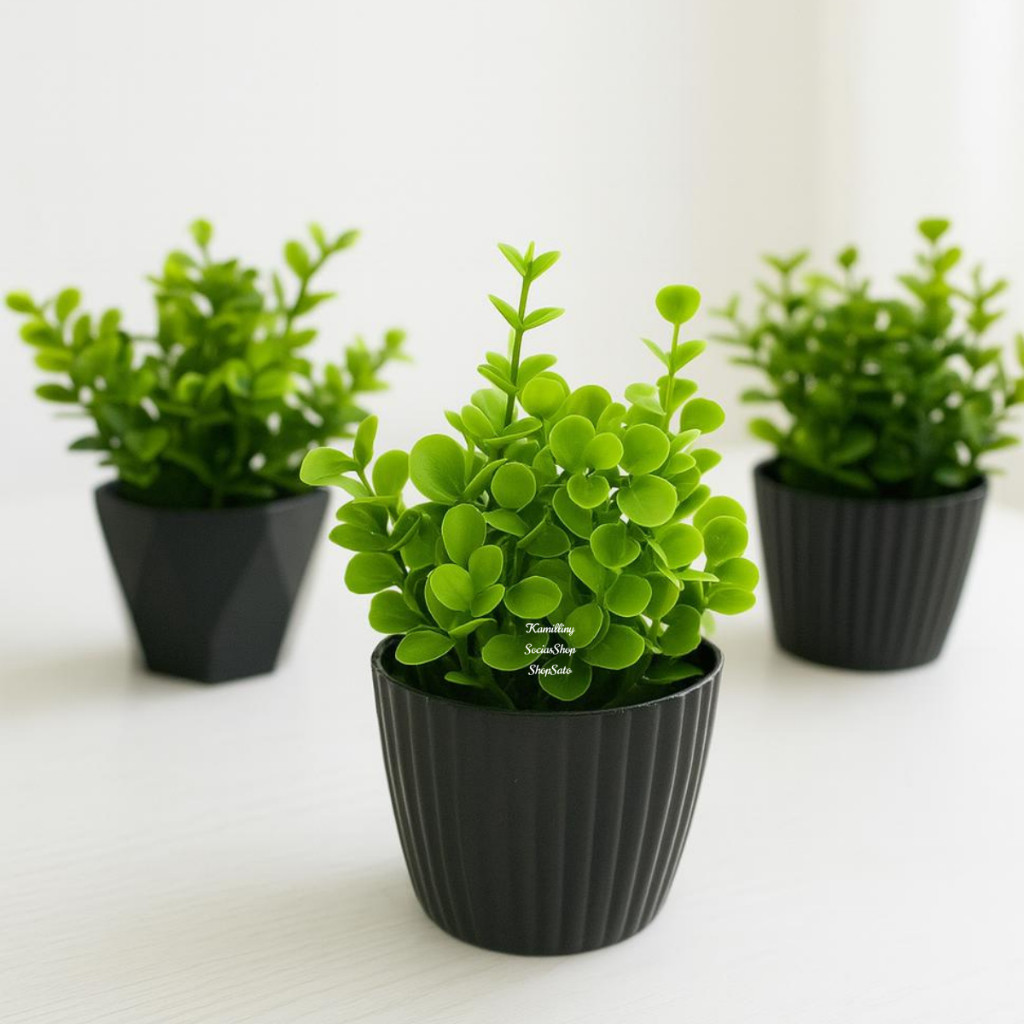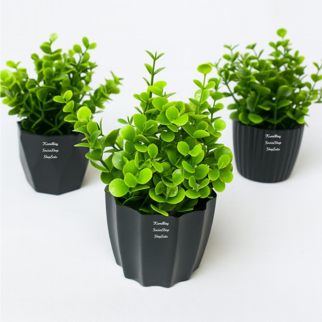Arranjos Buchinho Ramo Eucalipto Com Vasos Pretos Sortidos Decorativo 1R+1V
