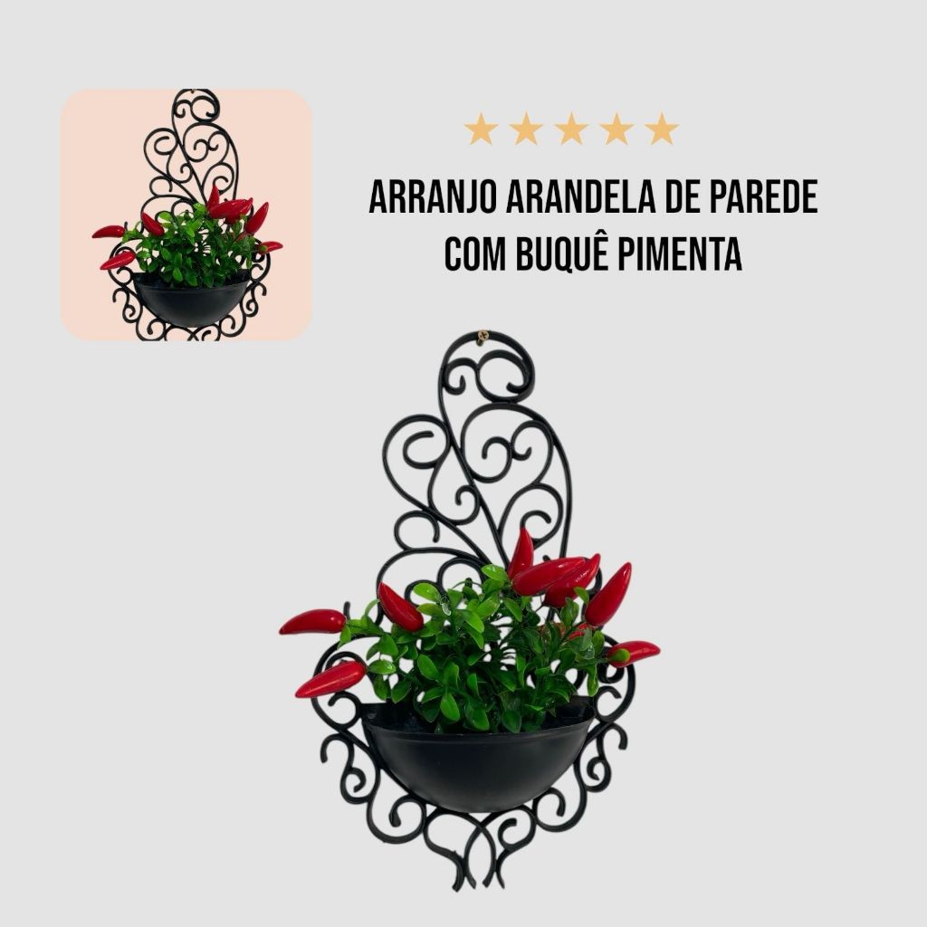Arranjo Arandela de Parede Com Buquê Pimenta Decoração Arranjo artificial Plantas Enfeite