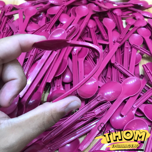 50 A 300 Colher Descartável Rosa Reforçada para Açaí Doces Sorvetes Super Resistente e Prática