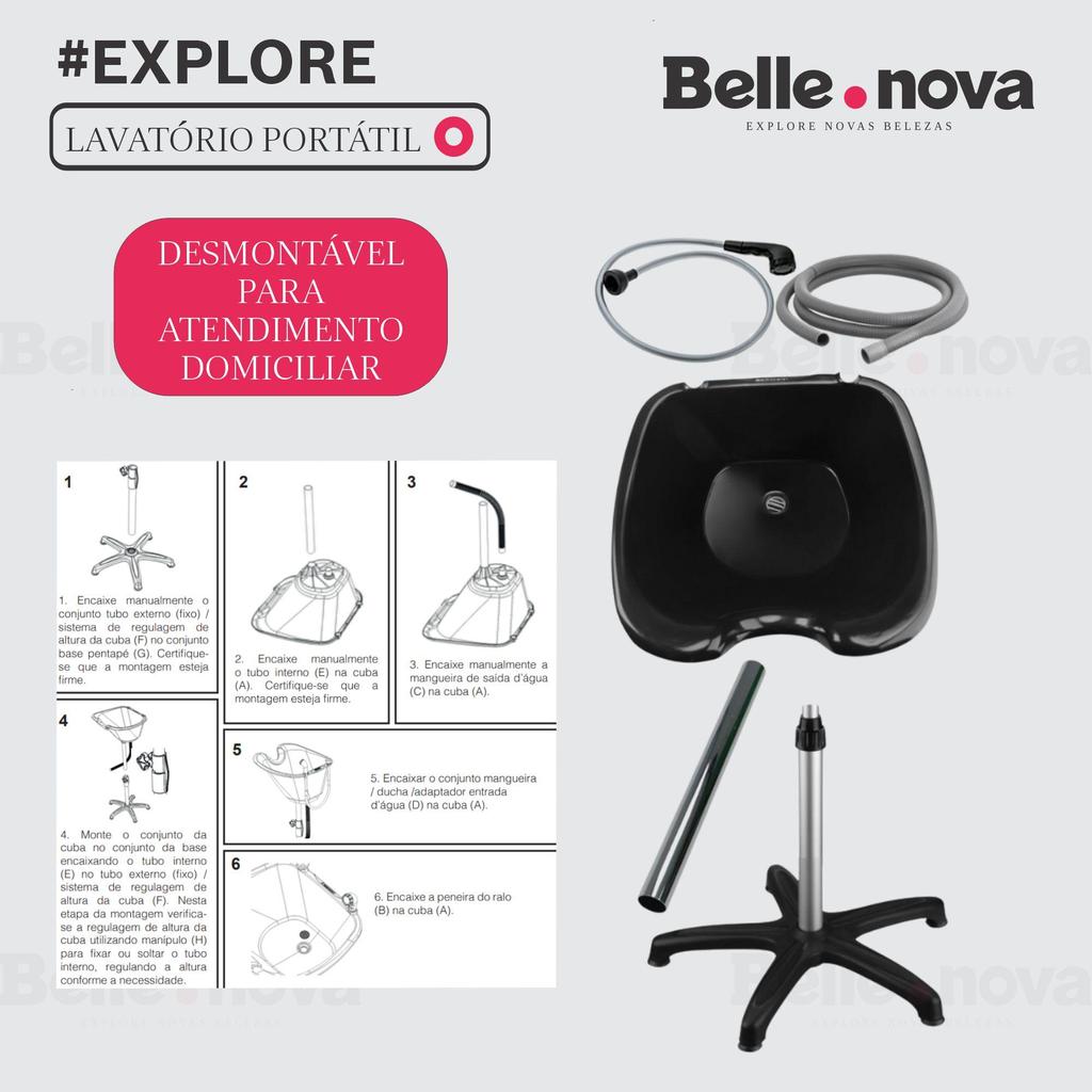 Lavatório Portátil BELLE NOVA com Ducha para Salão de Beleza Cabeleireiro Estética Prático Leve Ajustável Profissional